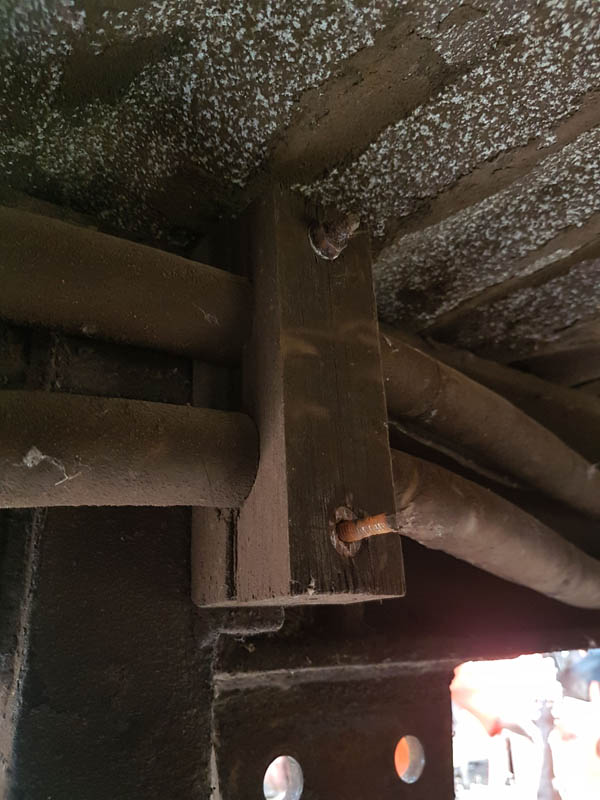 The stripping of the vehicle end continued into Sunday morning and the entire south end was successfully complete along with most of the way up the north end, unfortunately, it could not be complete due to the loose woodwork under the roof end which would not react well to our paint removing technique.
