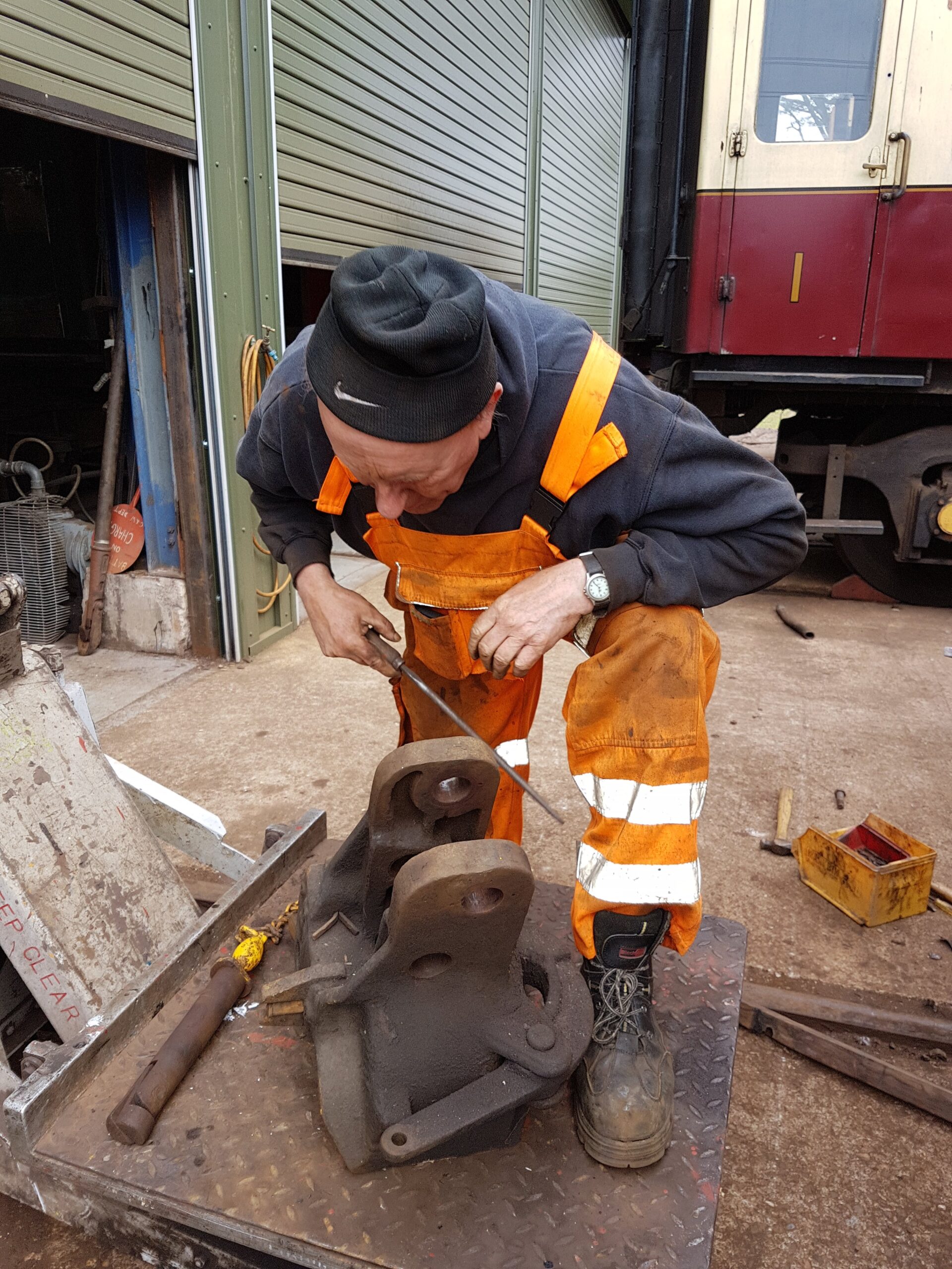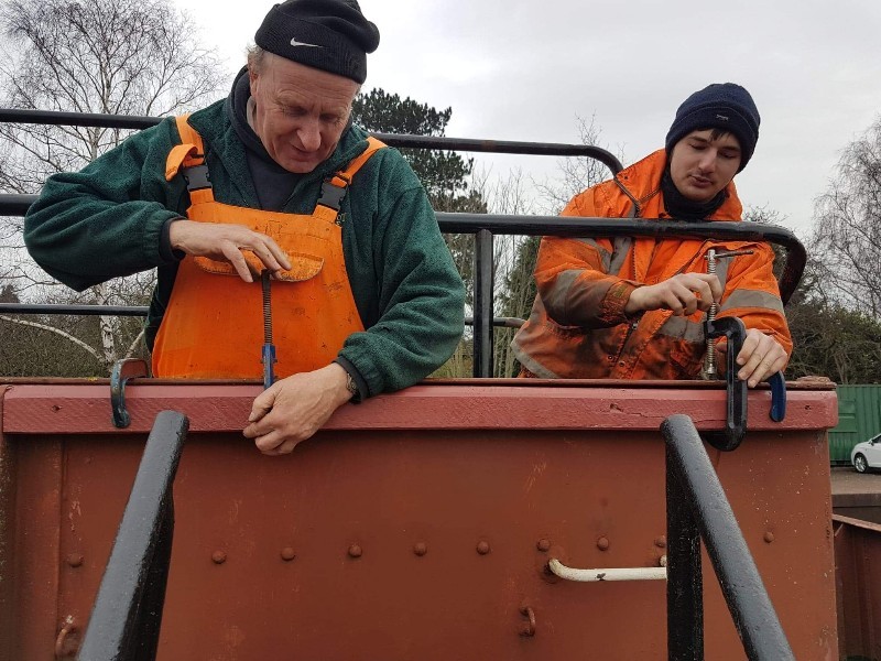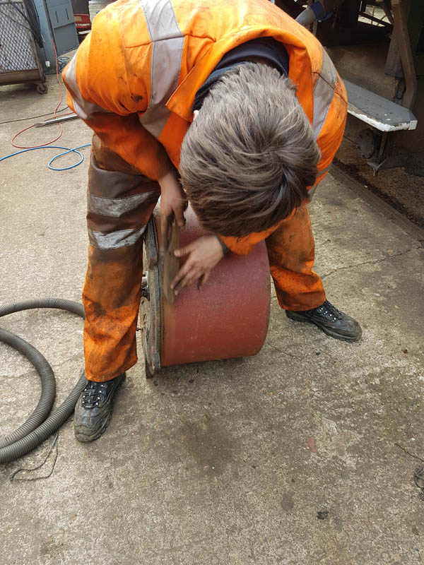 This weekend work of cause continues on 500954, with the weather as it is it would have been silly to waste it. The priority has been to paint the sides of the vehicle. The metal work was scraped down on the East side and Jake and Ross began the spraying.