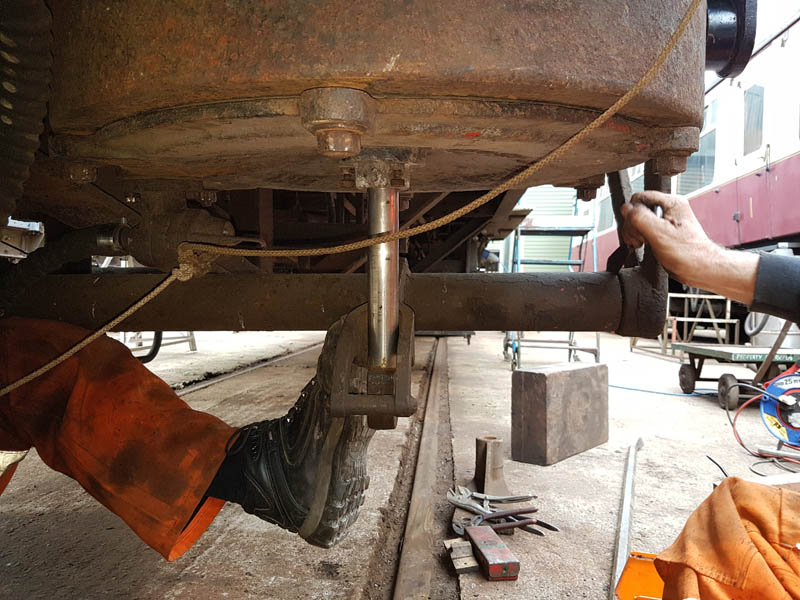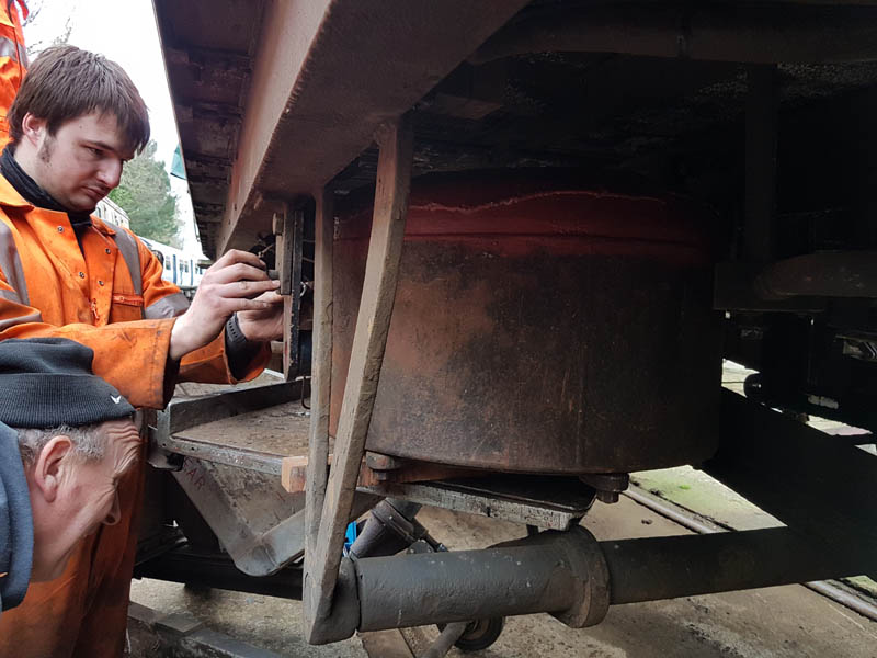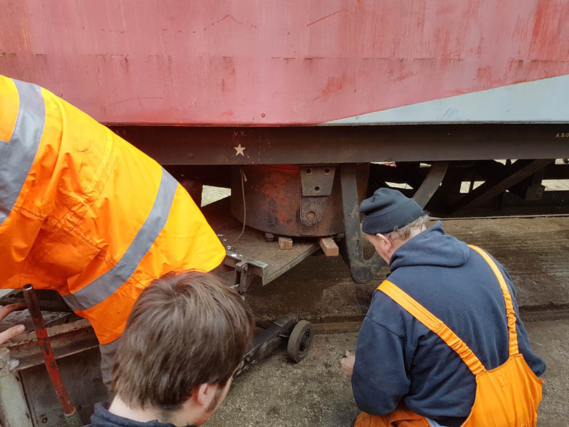 I, however, spent the day at the Mountsorrel Railway carrying out demonstration shunts, Dave was on site to assist in my absence. Although I was also on a fact-finding mission as I took the opportunity to measure the brake cylinder actuating arm on the main brake cross shaft of our LMS medfit. This item is missing from the van and we will require it to reinstate the brakes.