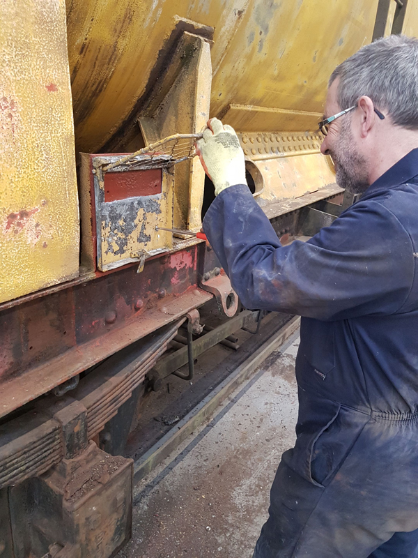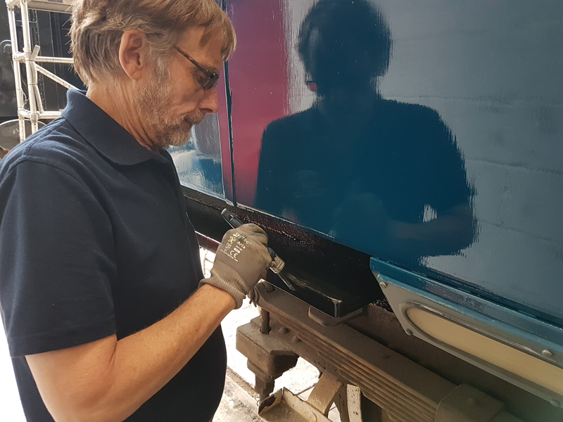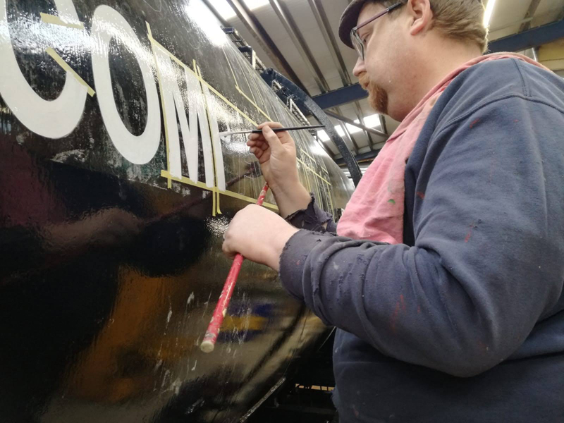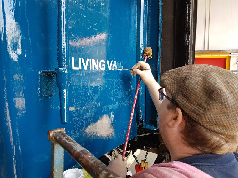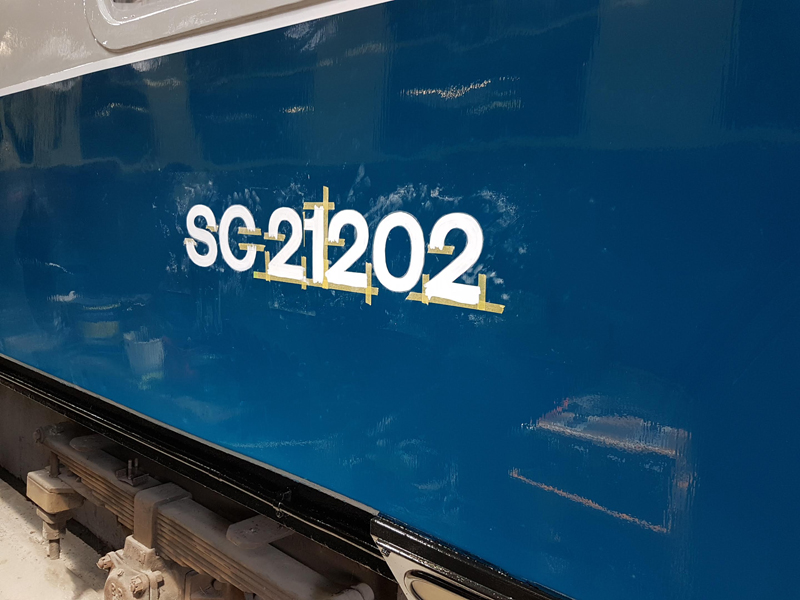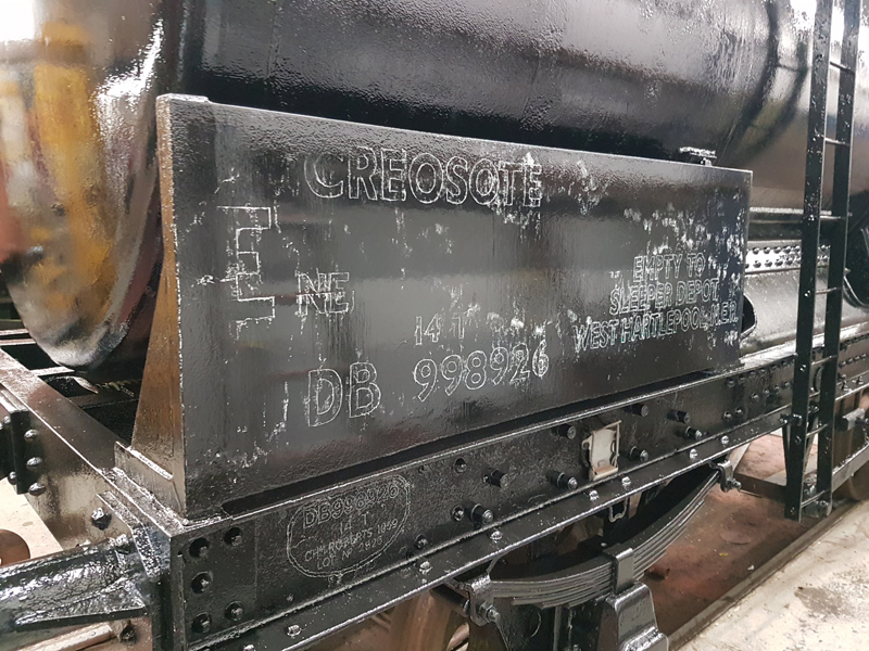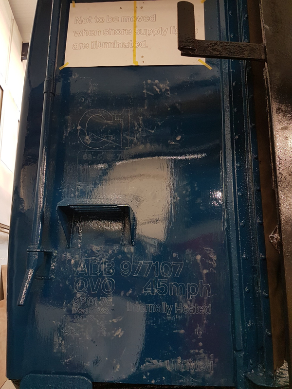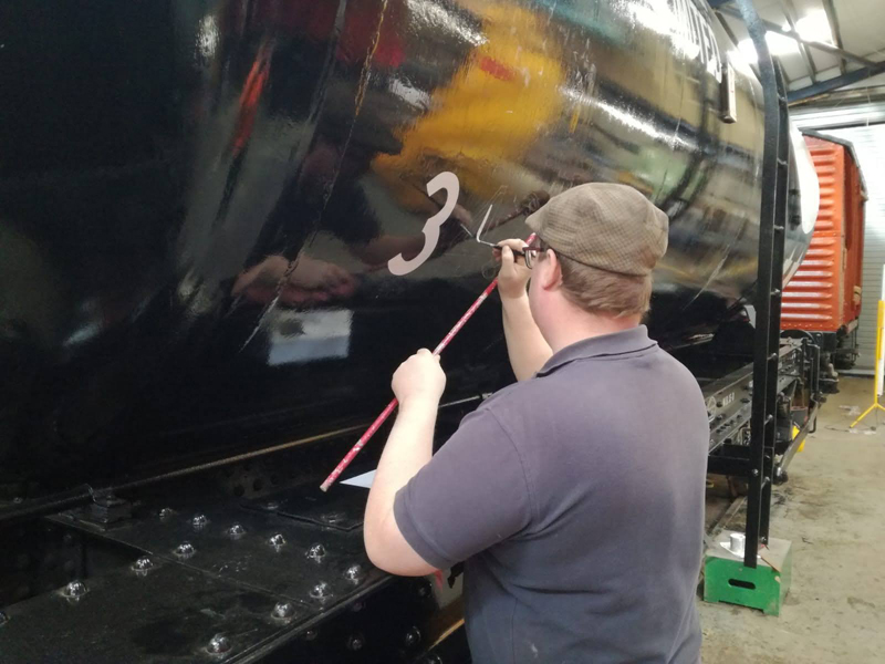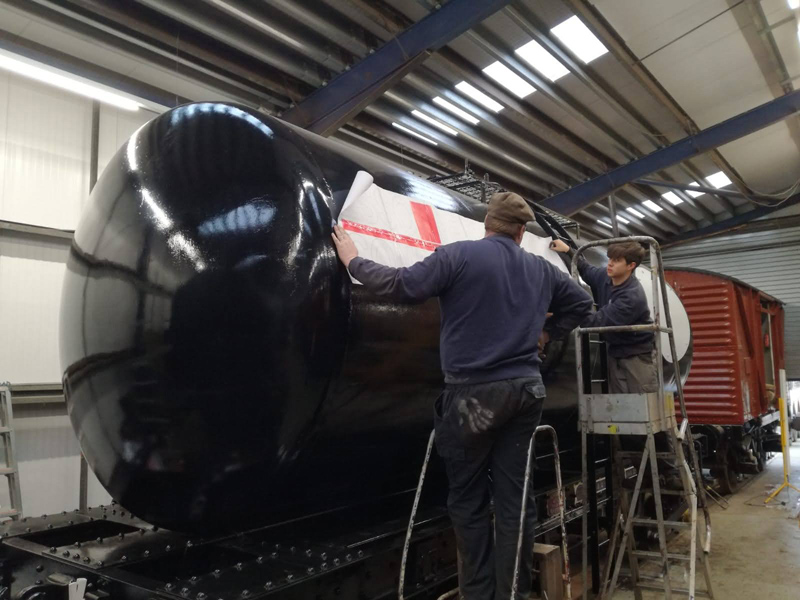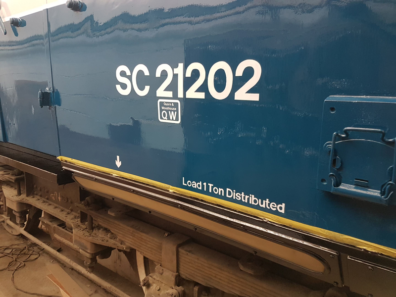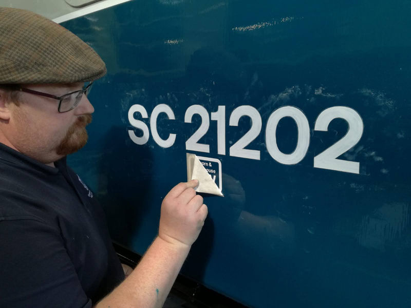 Dave taking the lead with the sign writing on this one, applying the running numbers, Guards door, load marking and the No 1 wheel arrow. Regards the latter we have gone for the rarer legend without the word evenly.