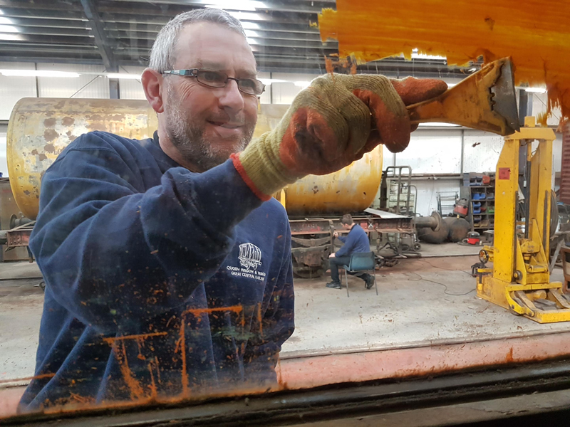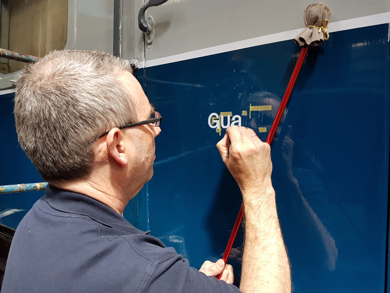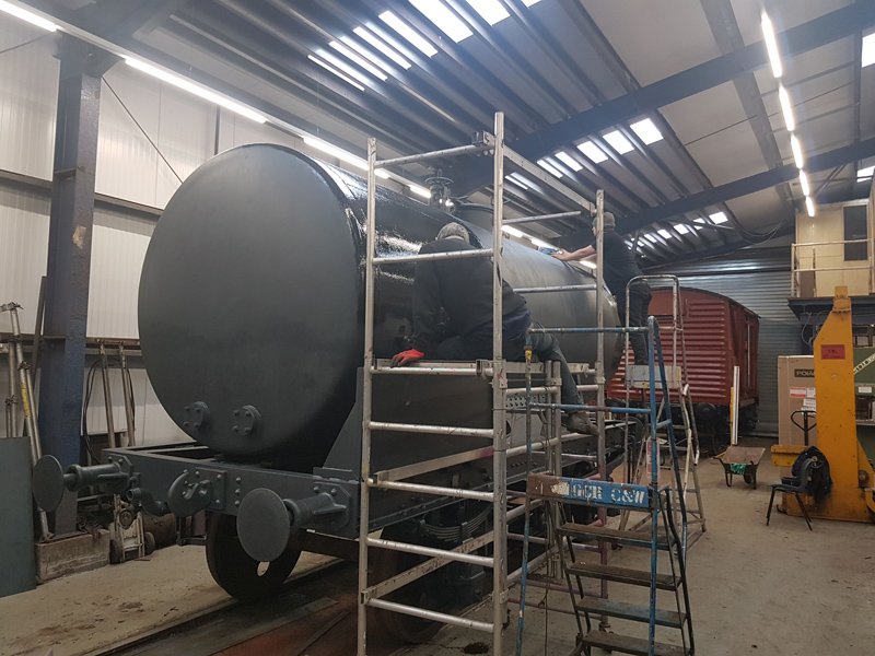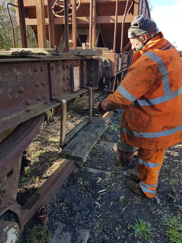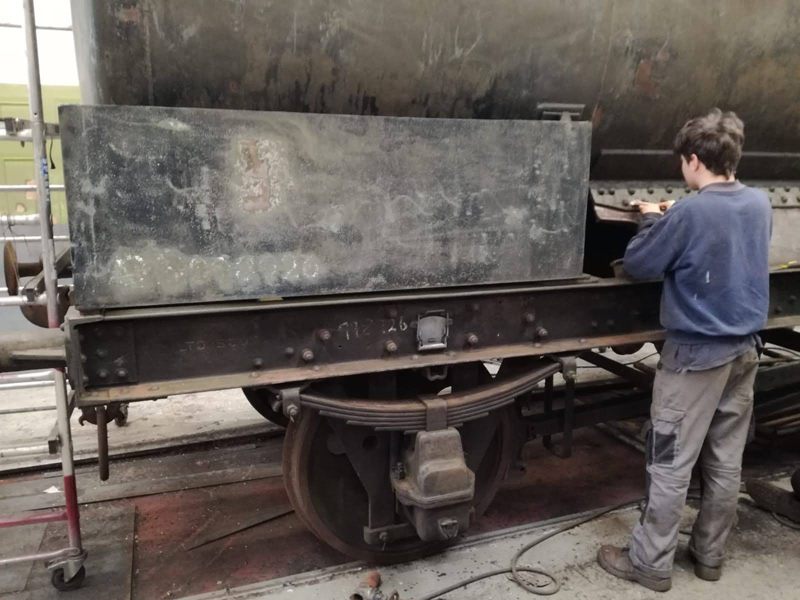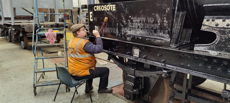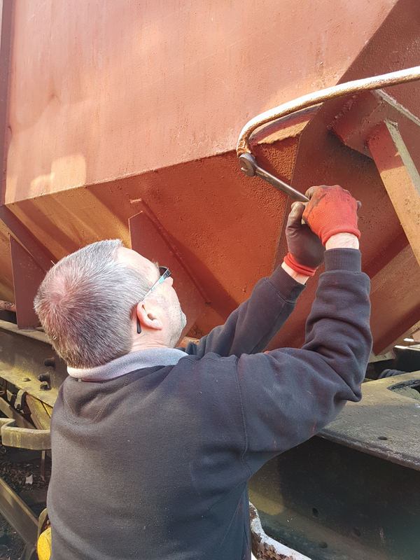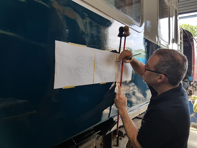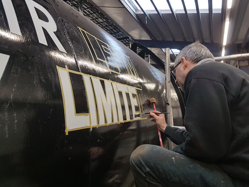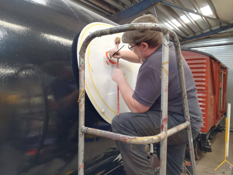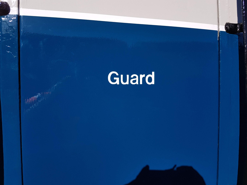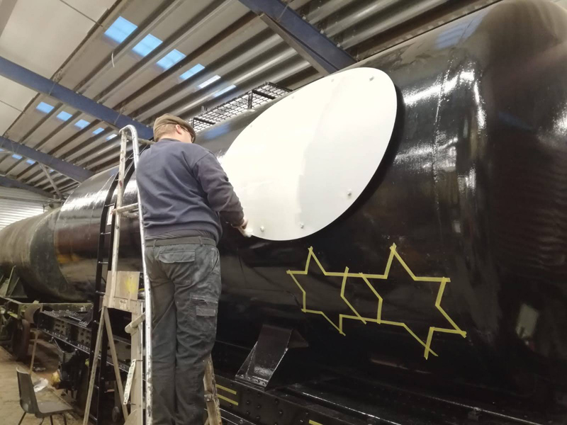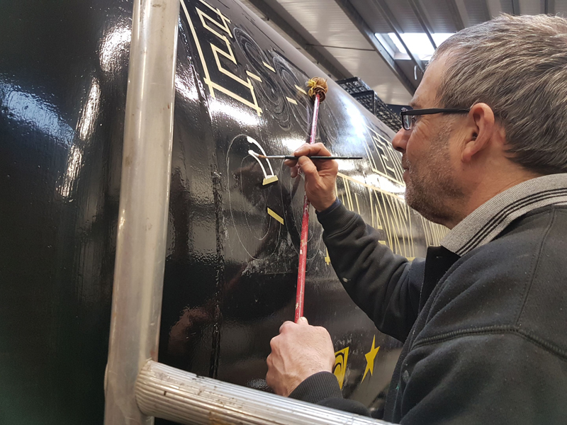 Dave taking the lead with the sign writing on this one, applying the running numbers, Guards door, load marking and the No 1 wheel arrow. Regards the latter we have gone for the rarer legend without the word evenly.