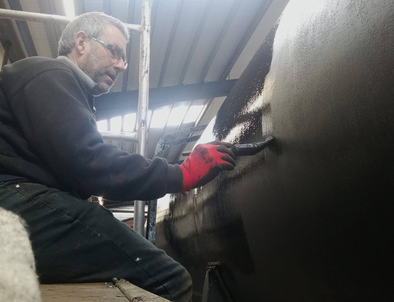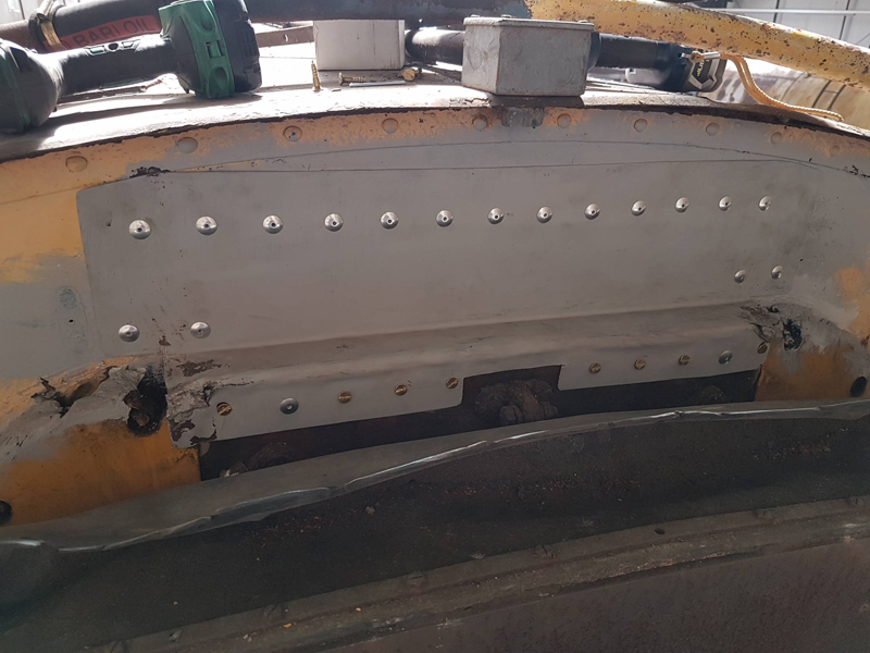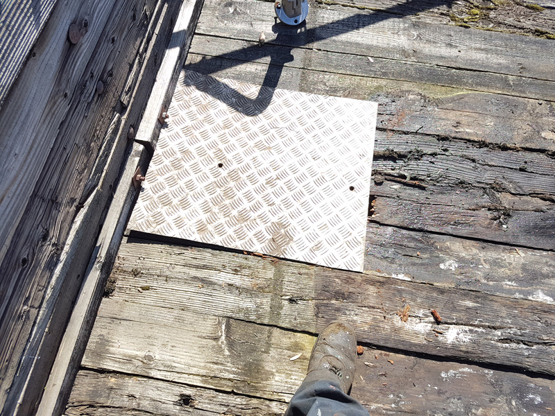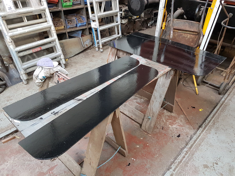 Richard continued with the black application, focusing on the east sole bar as well as the plywood panels, and assisting me with the odd request for assistance.