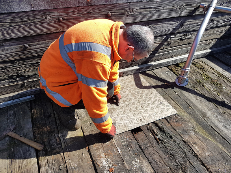 Richard again with the black. Second coating the light boxes, steps and first coat for the east side guards hand rails as well as assisting Jake with the door handles