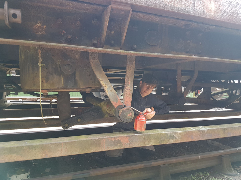 The reason for Nicks unusual arrival time was a trip to the Leighton Buzzard Railway, collecting another new arrival. A companion for our existing BRUTe. After a move to Quorn we unloaded it from the van and took a few moments to free off and lubricate the running gear.