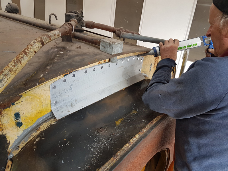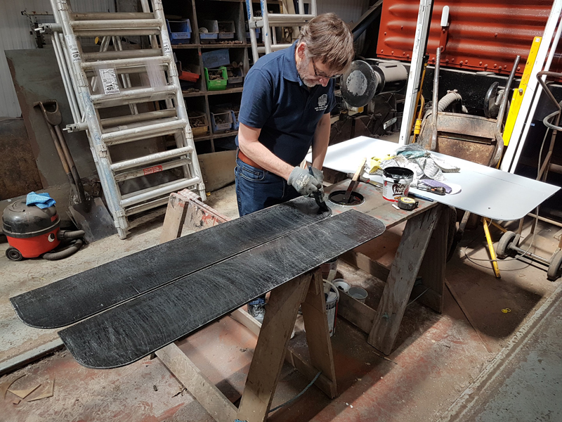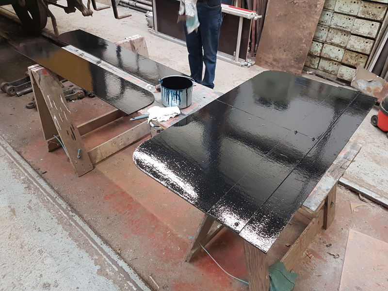 After the grey, Richard moved on to black applying it to the sole bar and the plywood panels manufactured Sunday.