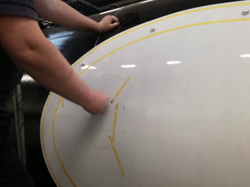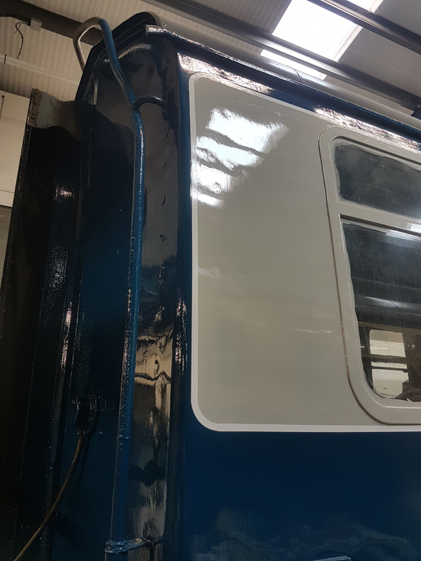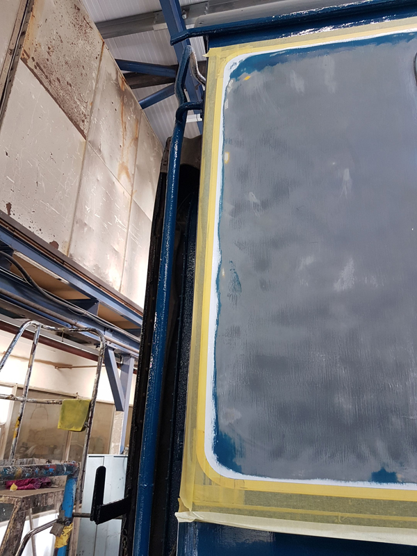 The inner area of residual blue gloss was then keyed and 2 coats of white applied.