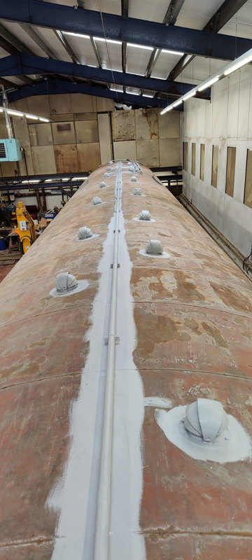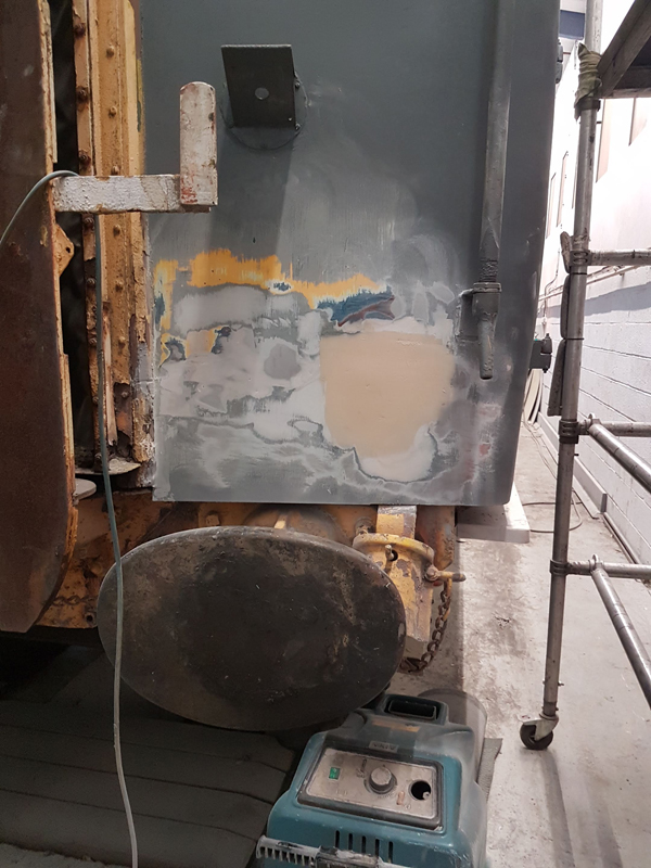 On to Wednesday, Richard and I once again on site. My first task was to mask the lining applied to the west side Monday. Once masked the excess paint was sanded and keyed.