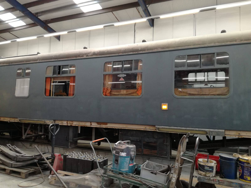 Its my turn to have a week off and what better way to spend it than applying a 56 year old livery to a 63 year old coach. So, as we are, squirreled away on 3 road in Rothley shed between various shades of Red/Maroon the canvas was ready.