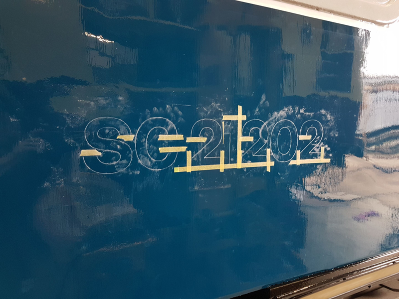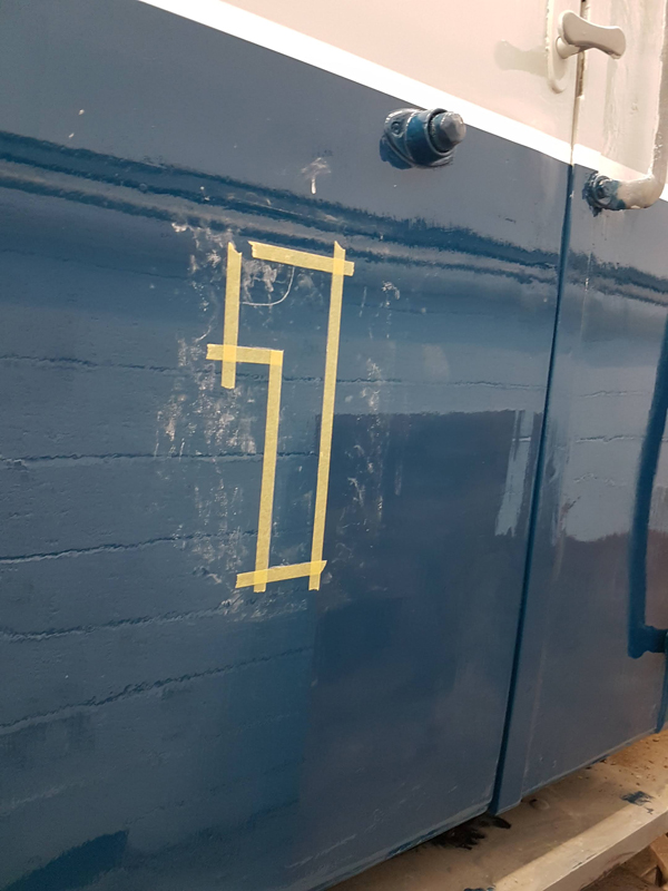 I then turned my attention back to the west side, masking up and applying the first class stripe.