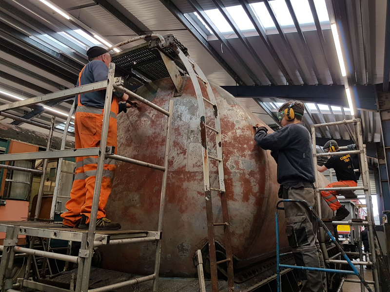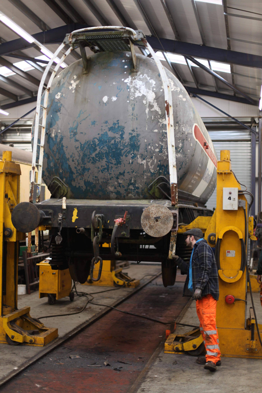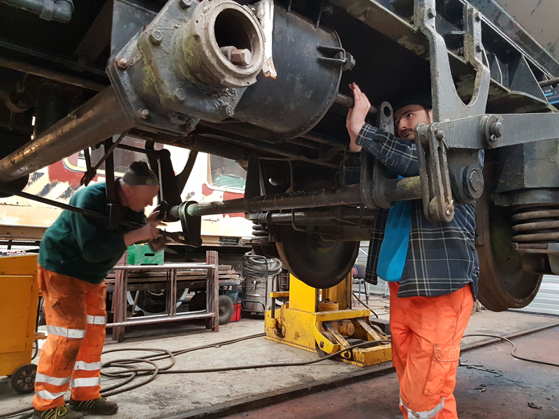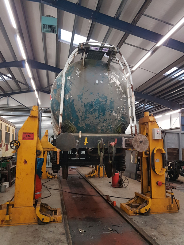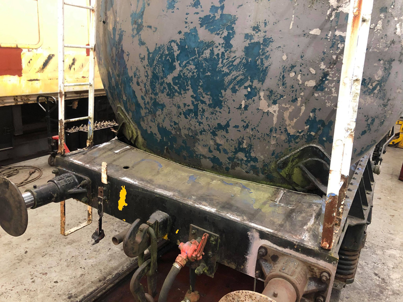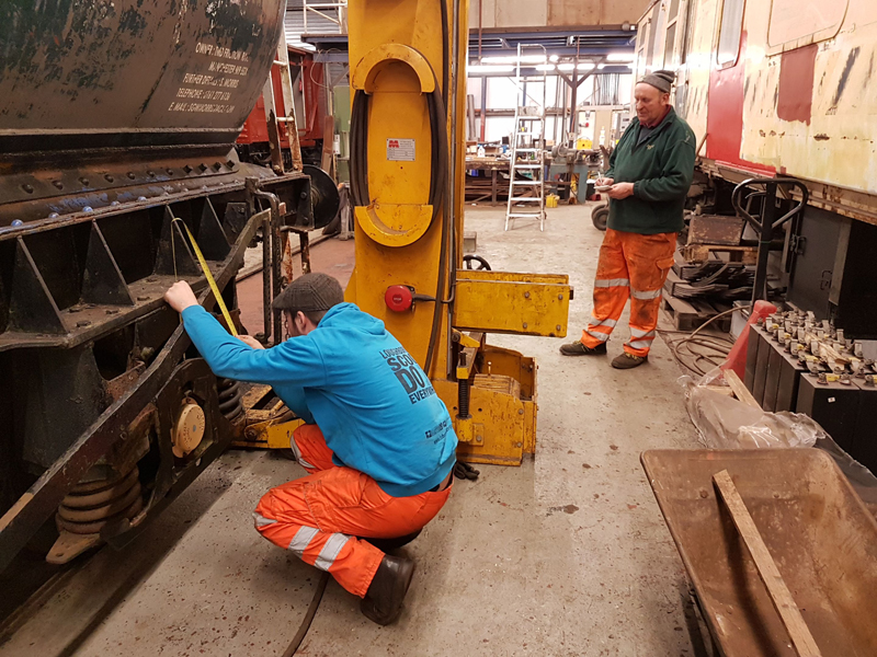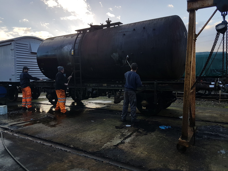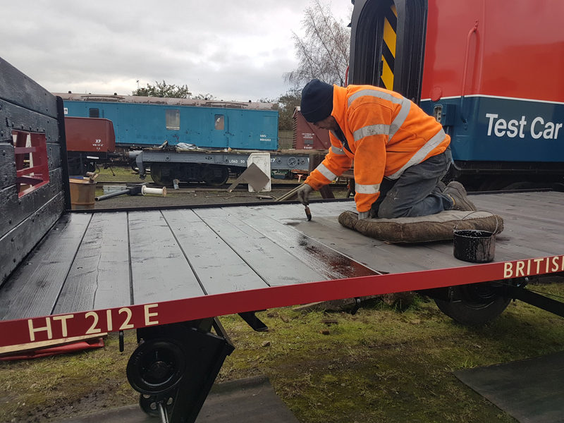 As well as Bridges, Canopies also require flat wagons. Specifically the repairs to Loughborough’s Canopy. The Tank flat was used to carry the main canopy structures from and to the work site as well as the single bolster used not only to remove materials but as a means to reduce the amount of scaffolding required to conduct the task.