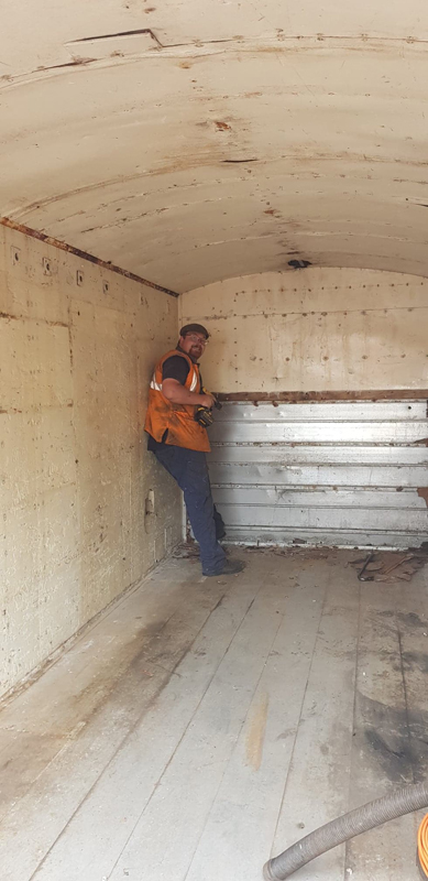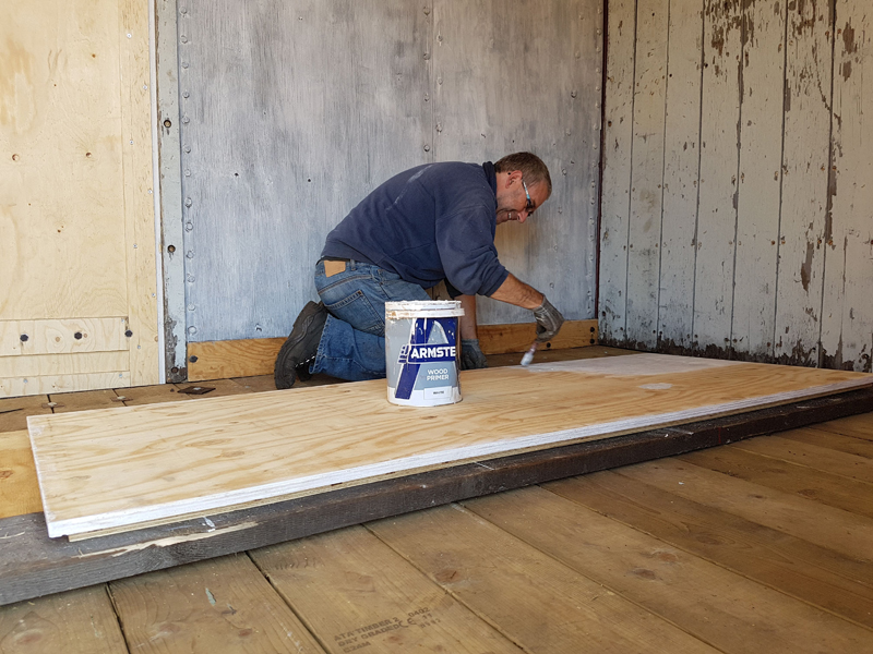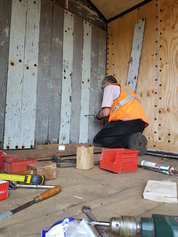 Dave turned to internal trim fitment, both on the van and the container. Re-used items from other areas were trimmed and fitted.
