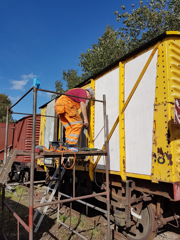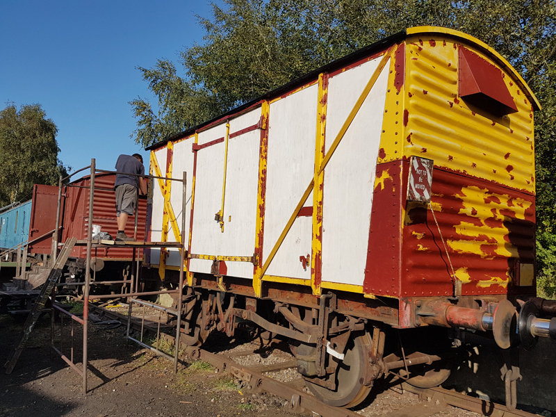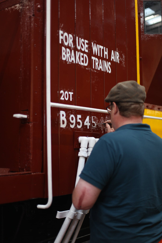 My boss for the past few months has been stating I need to use up some of my leave, so what best way than to take a week off to paint B954546. A Rothley volunteer has been slowly progressing the vehicle and enough progress had been made for external painting. For those who subscribe to the Rothley C&W facebook page you will have already seen what progress has been made.