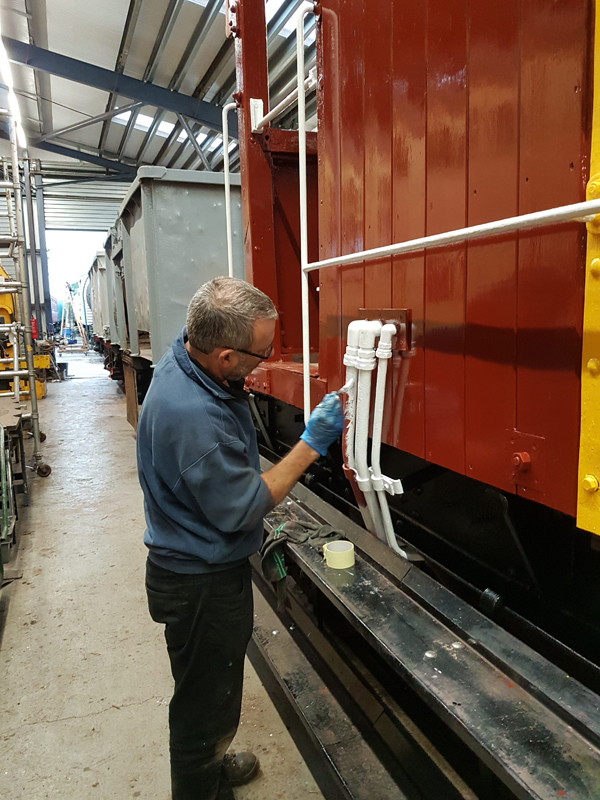 I started with the other colour, this being Warning Panel Yellow. It will no doubt be apparent that we are applying the late 1960s livery applied to Air Piped and Braked brake vans ours being Piped.