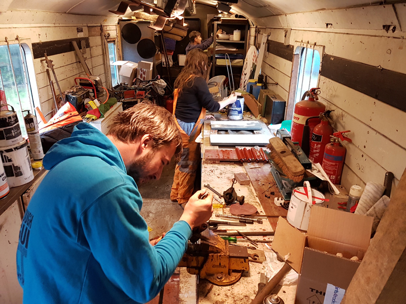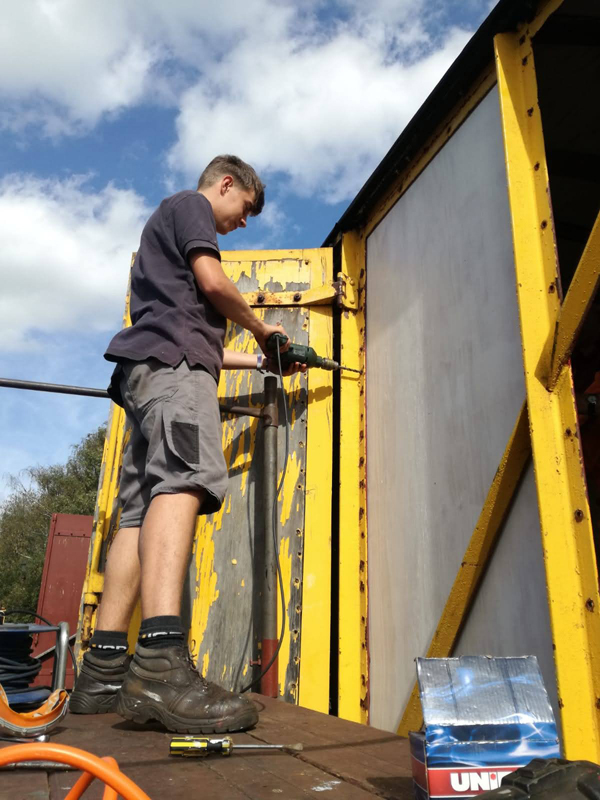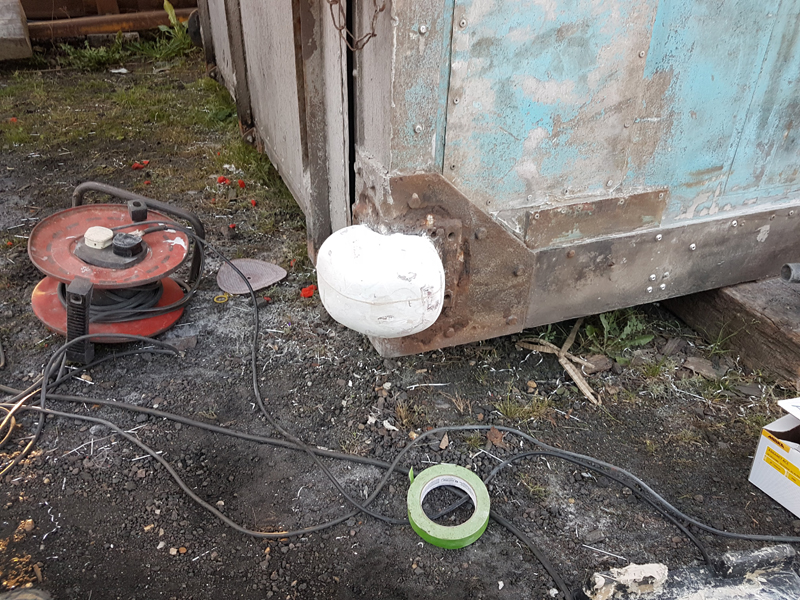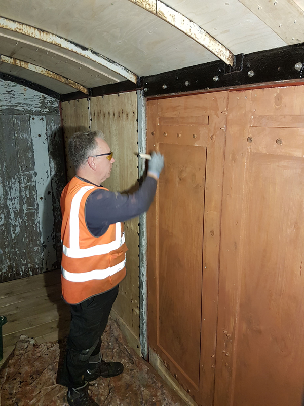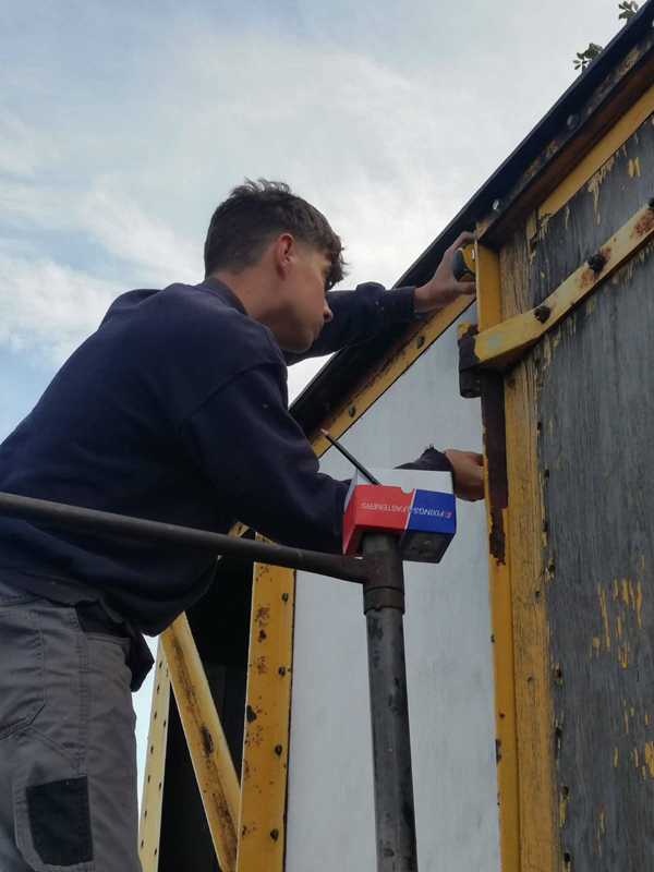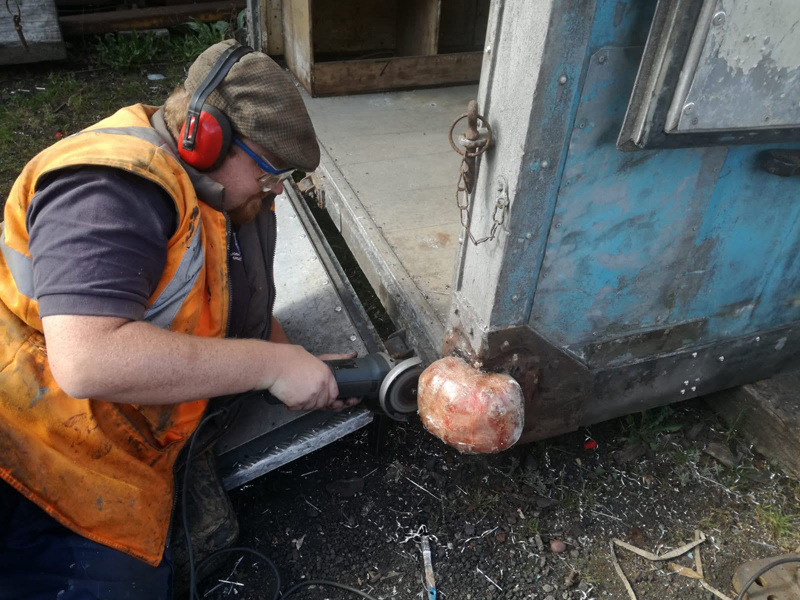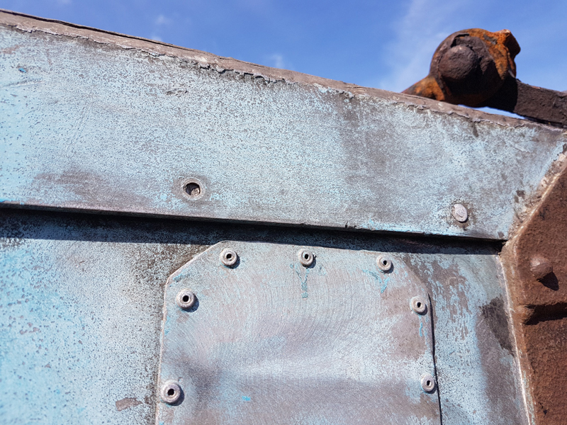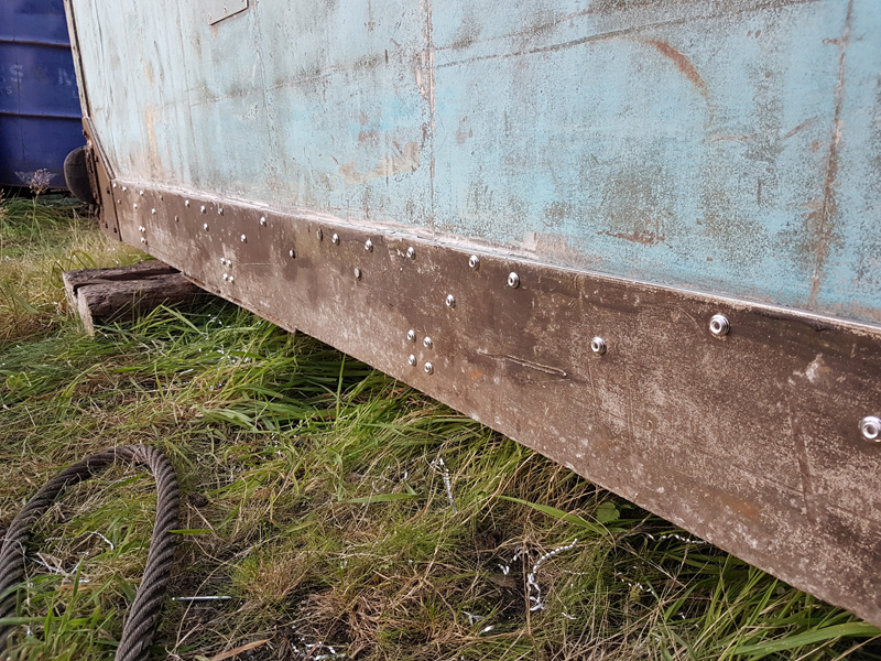 My focus was on my Container, the majority of the rivets holding the container together had corroded severely. These were systematically drilled out and replaced ensuring what integrity remains was maintained, I.E. each rivet removed was replaced to prevent areas falling apart. At the end of the day over 400 rivets were replaced.