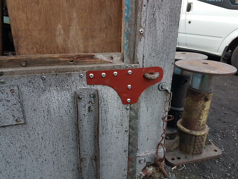 My attention was once again on my container, manufacturing a number of metallic items, namely; Over door rain strip, Lower door retaining eyes, Lower door edge trim and a replacement side repair plate. These were cut, shaped, drilled and primered.