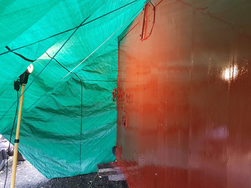 At the close of play on day four we have top coat applied to all areas above and including the sole bars.