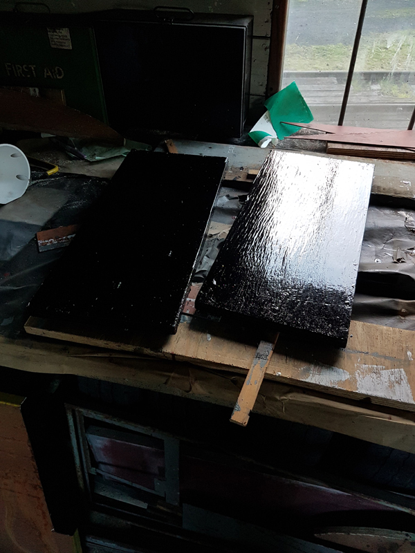 A day of gloss for day three. Dave taking care of the main event, the application of Bauxite.