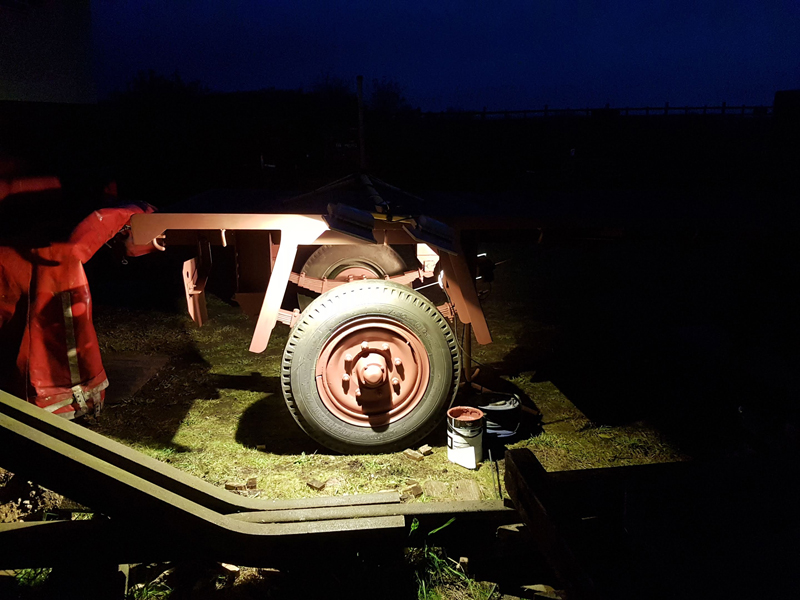 Dave then began the application of the deep red undercoat to the rest of the vehicle, chosen because it was half a tin that needed using up. Once I completed the body stripes I also moved on to the deep red.