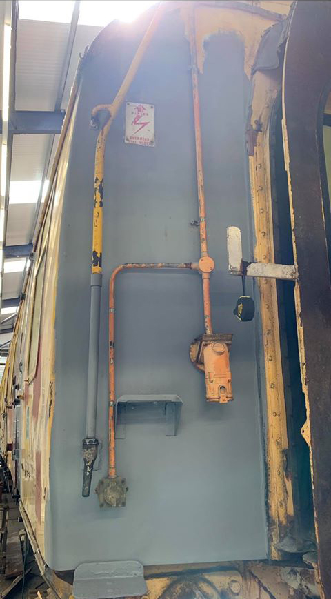 With a break in the weather I applied details to 280364s data panel and drilled holes for 281882s chalkboard brackets, these would originally have been welded but this is a facility we do not have due to power constraints. Red Oxide and Gloss was applied to the freshly drilled holes.