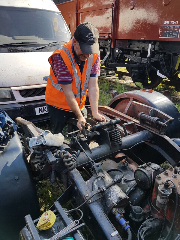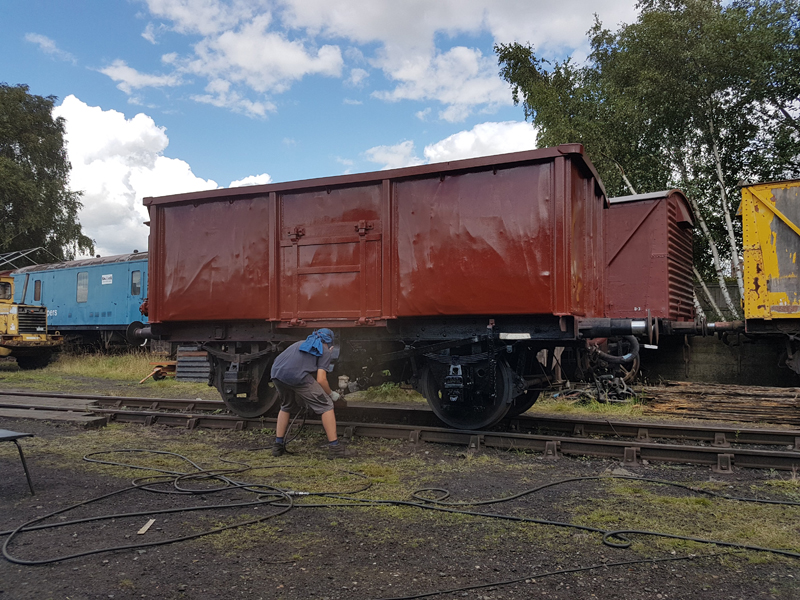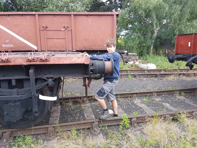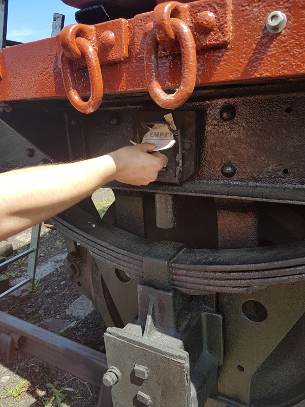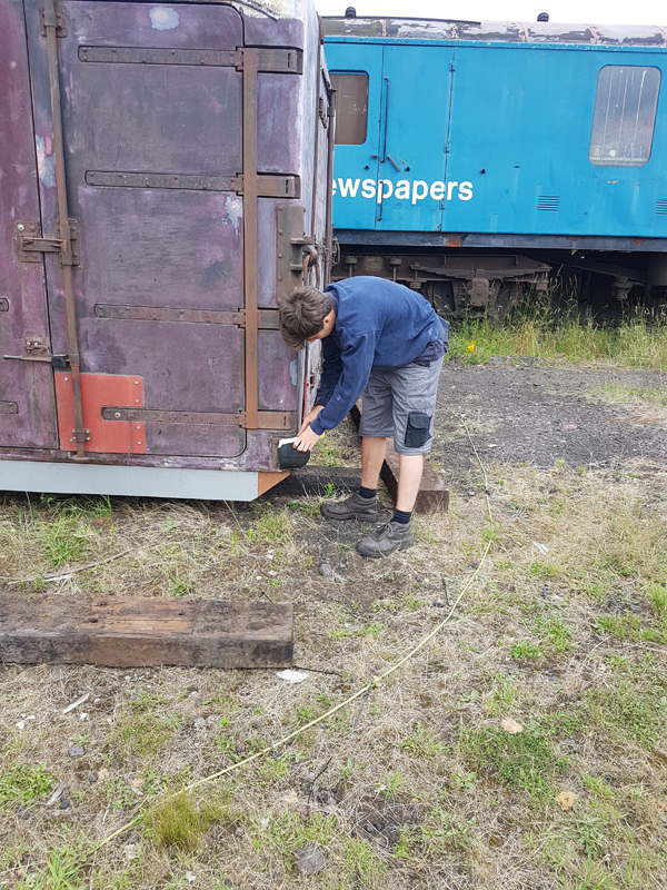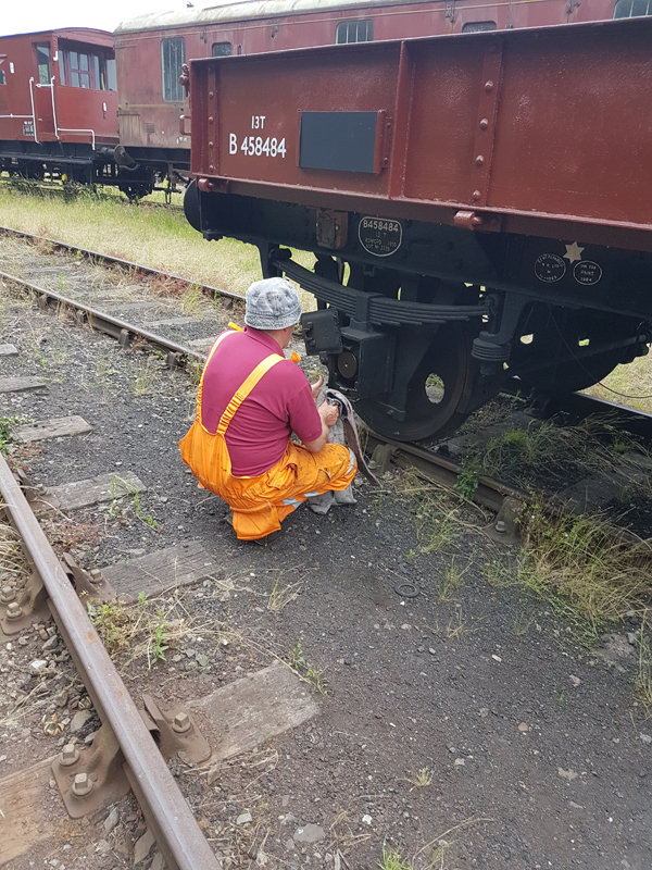 Jake and Nick’s next task was to look at B458484, it had been reported that this had suffered with a locked axel when shunted at Swithland some time ago. We manhandled it up and down the siding with it rolling freely. Each journal, oil pad, and axel was inspected, as well as the vacuum system tested and the hand brakes exercised. The vehicle was left with the brakes applied and when we returned the next day vacuum remained in the cylinder, this was released and again the vehicle man handled up and down the siding.