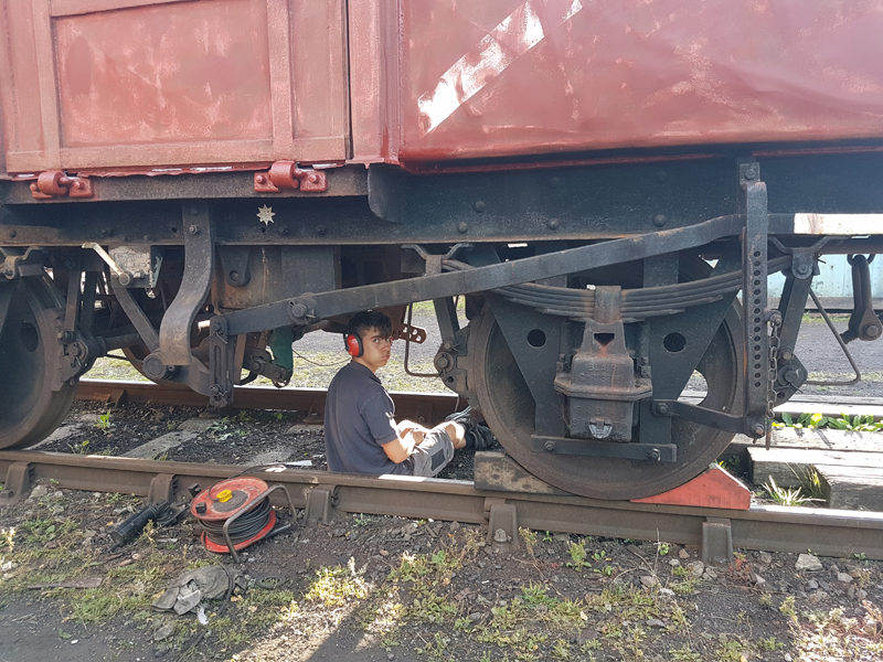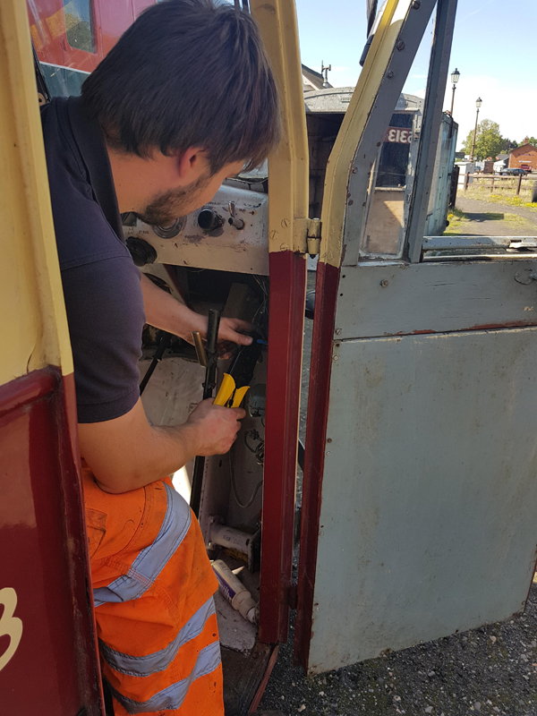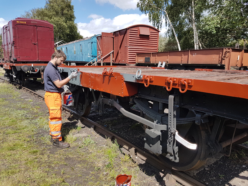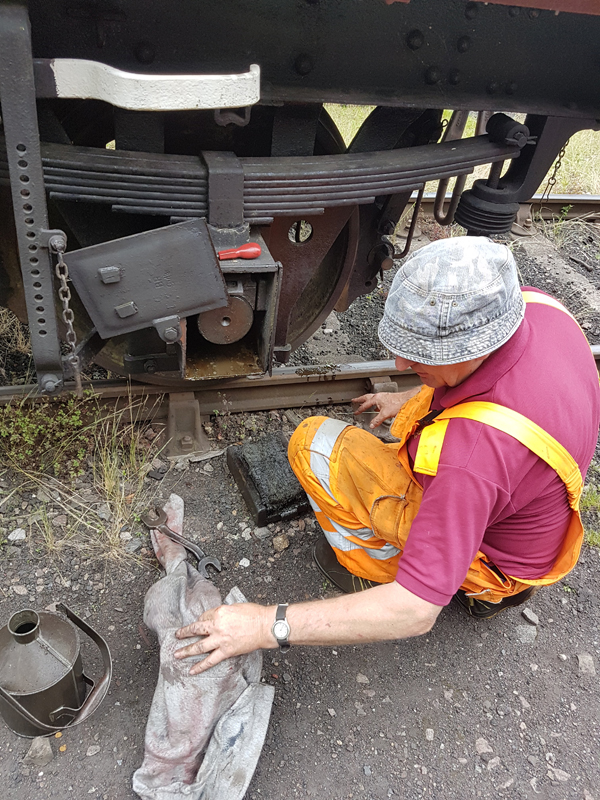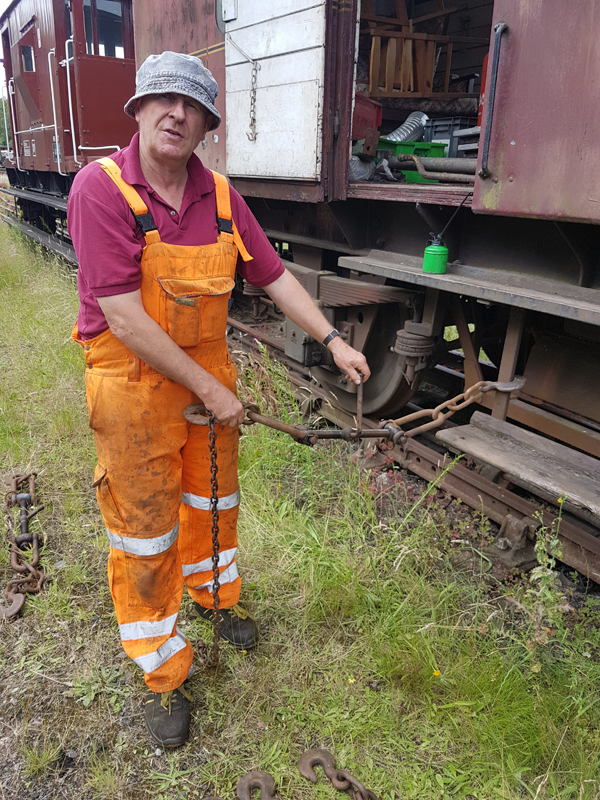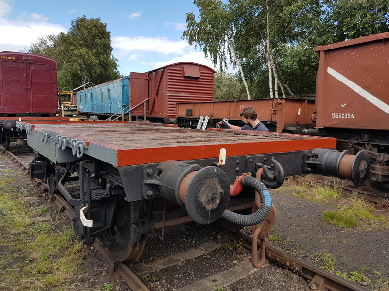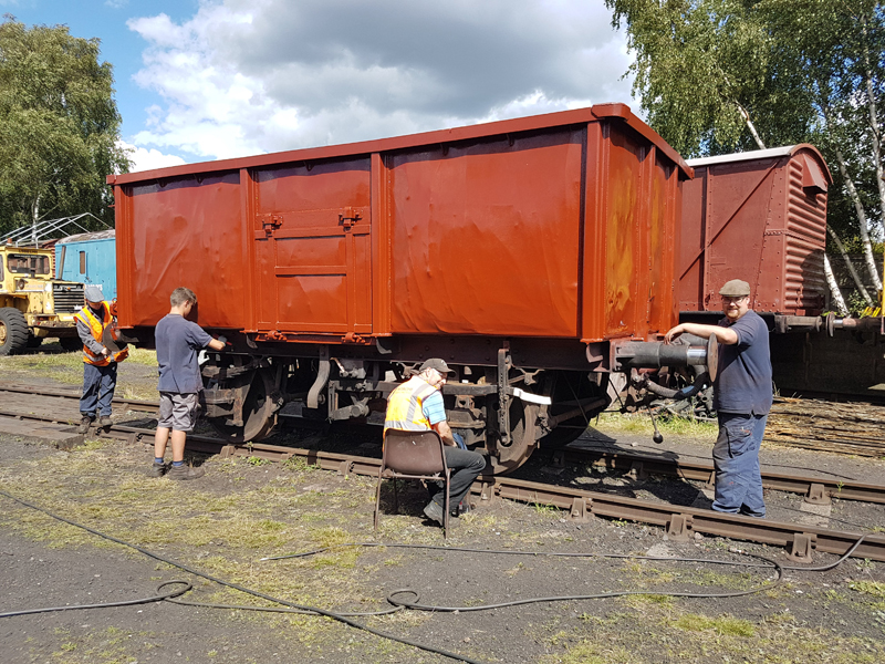 Jake and Nick’s next task was to look at B458484, it had been reported that this had suffered with a locked axel when shunted at Swithland some time ago. We manhandled it up and down the siding with it rolling freely. Each journal, oil pad, and axel was inspected, as well as the vacuum system tested and the hand brakes exercised. The vehicle was left with the brakes applied and when we returned the next day vacuum remained in the cylinder, this was released and again the vehicle man handled up and down the siding.