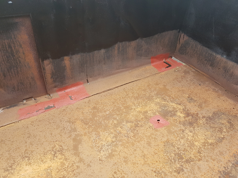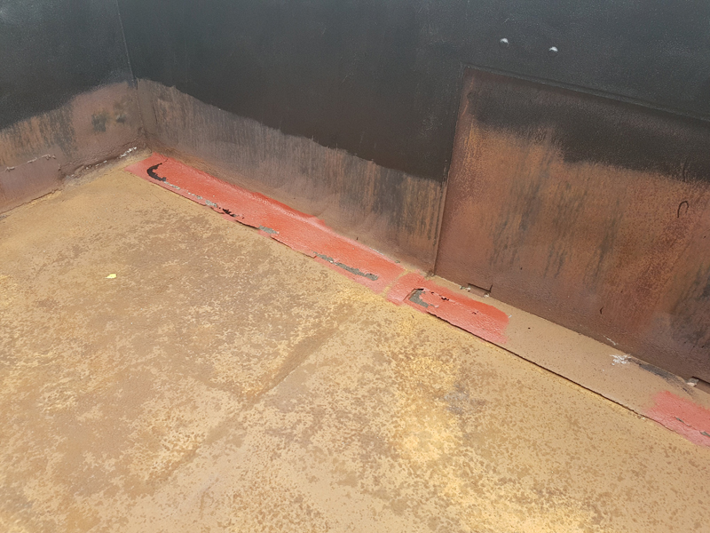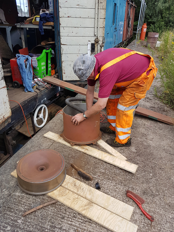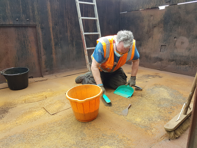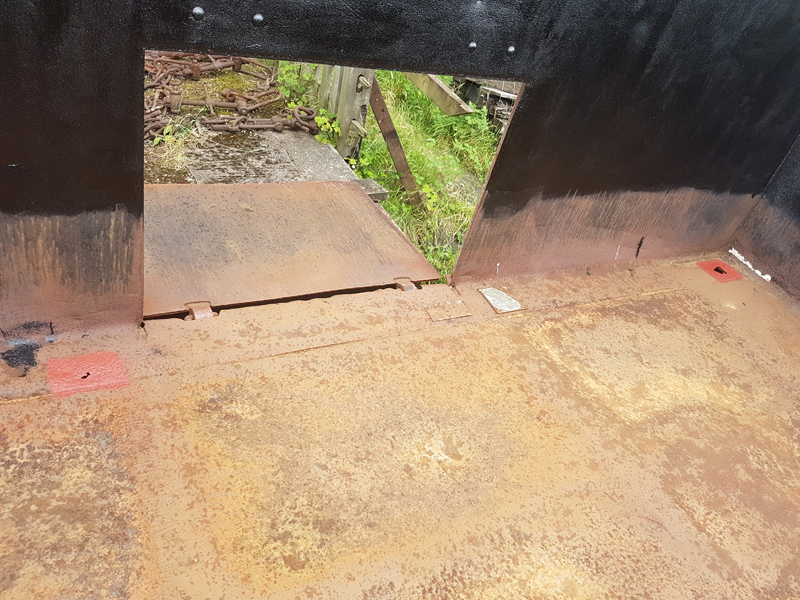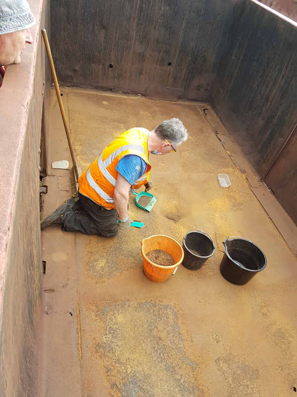 Eddie and Harry were also on-site and made a start on scraping down the mineral, a fair amount of loose rust was removed from the wagon’s floor.