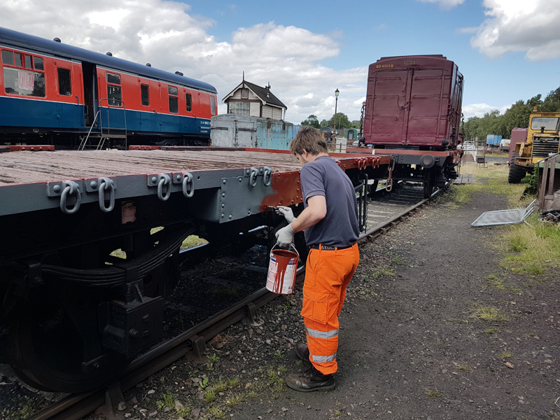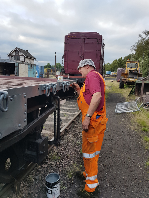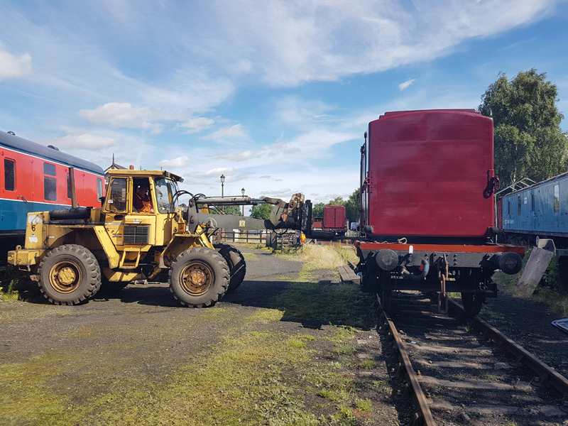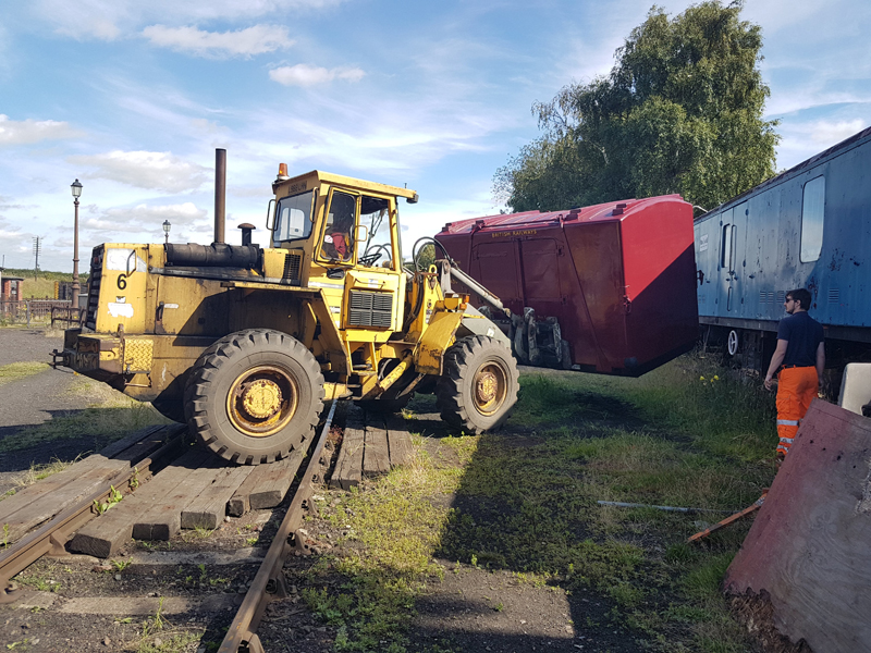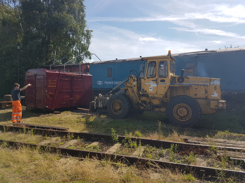 On to Sunday and first job to paint the kick plates for 4304 quickly followed by the main event. With the Loading Shovel started up and under Ross’s direction we once again brought a Container and Conflat together.
