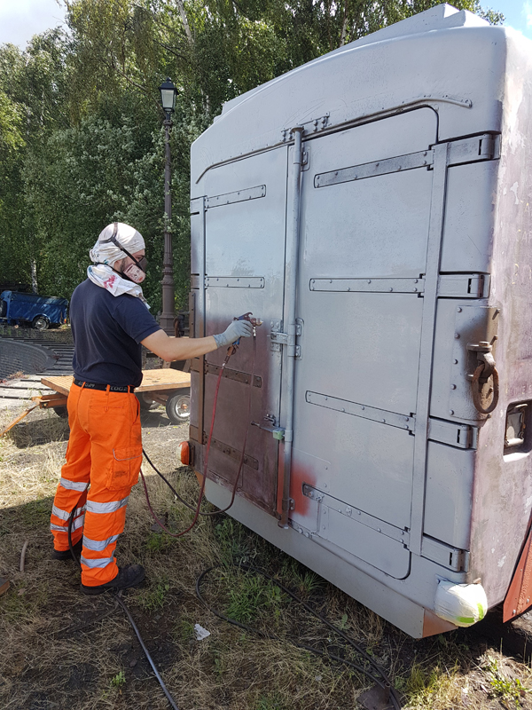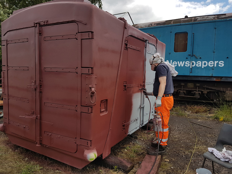 With the undercoat requiring a little longer to dry Ross and I continued painting but the more traditional method and the usual Bauxite shade, as we continue the Conflats repaint.