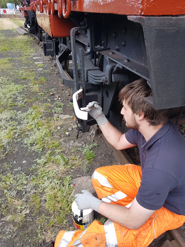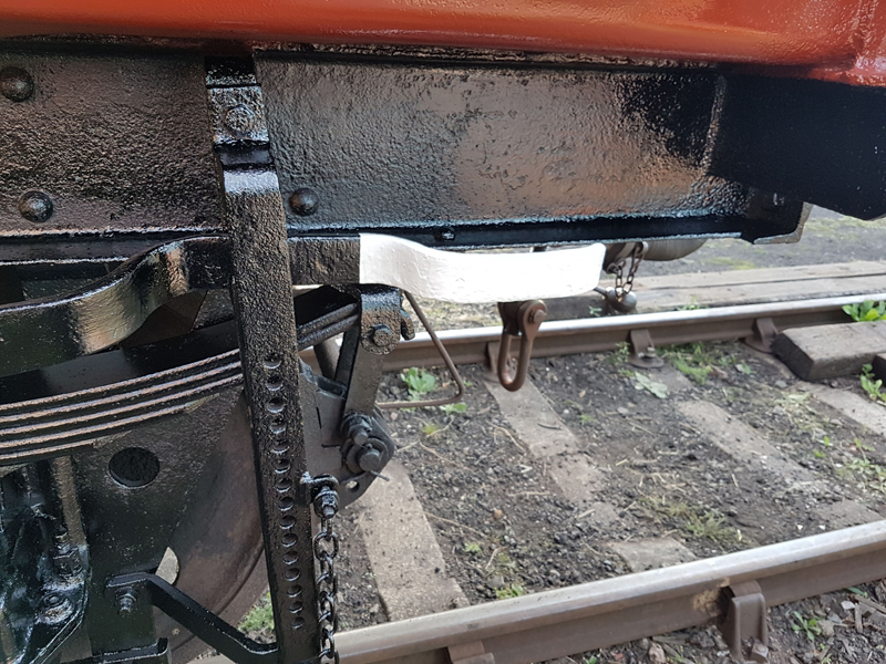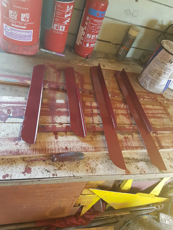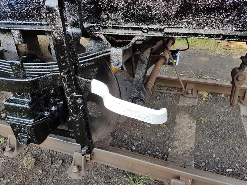 My first job was to apply the top coat to the chalkboards and brackets, followed by painting the adjustment indicators and brake pin on 280364, as pers 1970s spec.