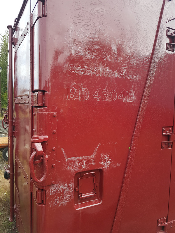 This is were variation begins to come in, as the number of works and the manpower within reduced full repaints of vehicles were also reduced, with only bare parts or replaced parts being painted. This lead to the specifications being adhered to but older markings remaining in place. The biggest example of this being the XP marking, if it remained legible it remained in its position above the wheelbase on the right-hand side of the vehicle. If it had faded or on fully repainted vehicles the XP was placed within a box to the right of the main group of details. If the vehicle was vacuum-braked but not suitable to run in an Express Goods then the box was applied without the XP, or if modified the XP was painted out.
