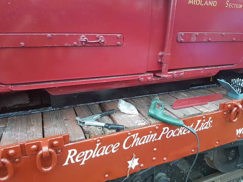 Our only departure from standard practice is the application of bitumastic paint to solebar andbelow, this is to protect the underframes as they take a fair amount of abuse from wet track and brake dust and can be touched up very easily without having to prime and undercoat.