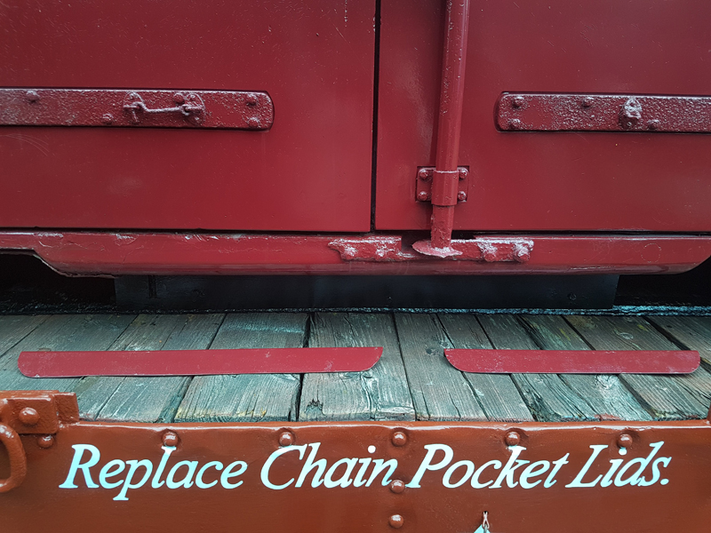 We then set about the task of securing the container, chains fitted and tightened down, although, as expected, we had to modify the chains by shortening a number of links as was done with 4303. Whilst Nick and Ross carried out this task I began the signwriting.