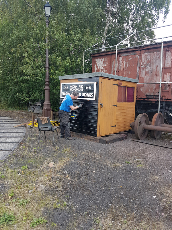 Nick and Jake concentrated on preparing the securing chains and fitted the identification plate over the doors of 4304. Jack was also on-site preparing posters for the station.