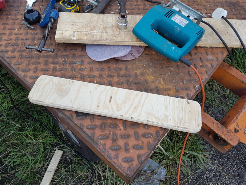 On to Wednesday and as usual the weather had other ideas. First job I drilled out the blobs of weld which filled in the holes for the chalkboard brackets and assisted by my wife Michelle we fitted four brackets, this allowed me to measure up for the new boards which I cut and primed.