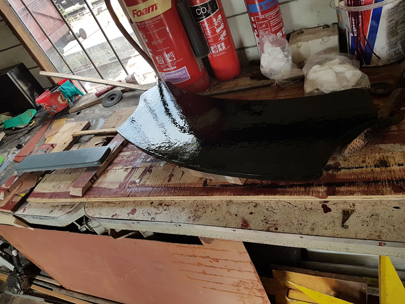 The rest of the team also painted the headstocks with bitumastic paint