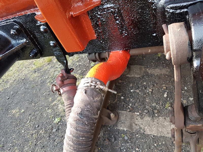 Returning on Sunday and the restrictions remaining in force Jake sprayed the underframes in Bitumin. Nick followed up with a brush reaching the areas missed by the gun.