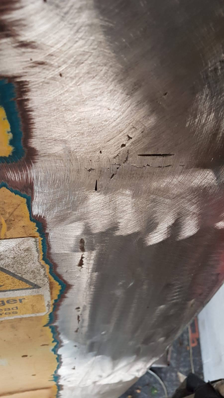 My attention then turned to B550356, initially marking out areas requiring repair and taking measurements. I was then joined by James who continued the scraping down of the vehicle whilst I cut the required repair plates.