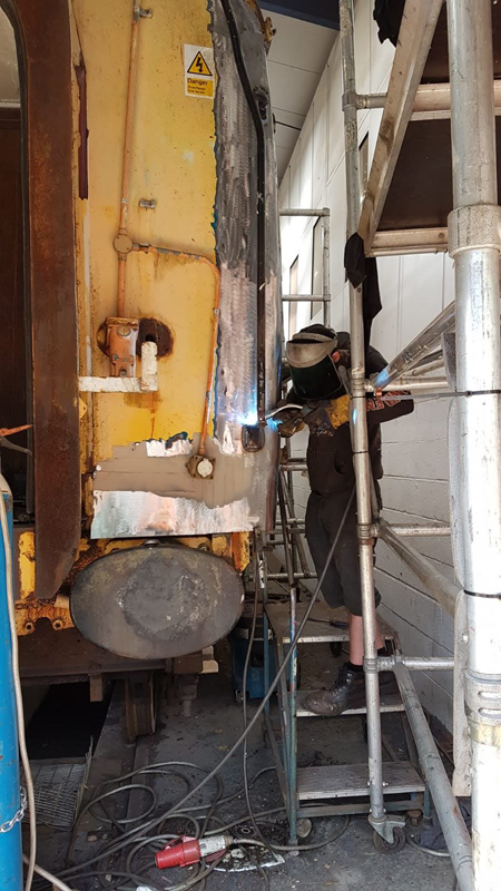 The task at Rothley centered around ADB977107, welding continues on this vehicle as we are keen for it to return to Quorn. Jamie giving Jake some instruction into the art of welding. The South east corner and toilet filler as well as under the first-class toilet window being the focus for today as well as some of the missing brackets for the steps under the luggage and first class doors.