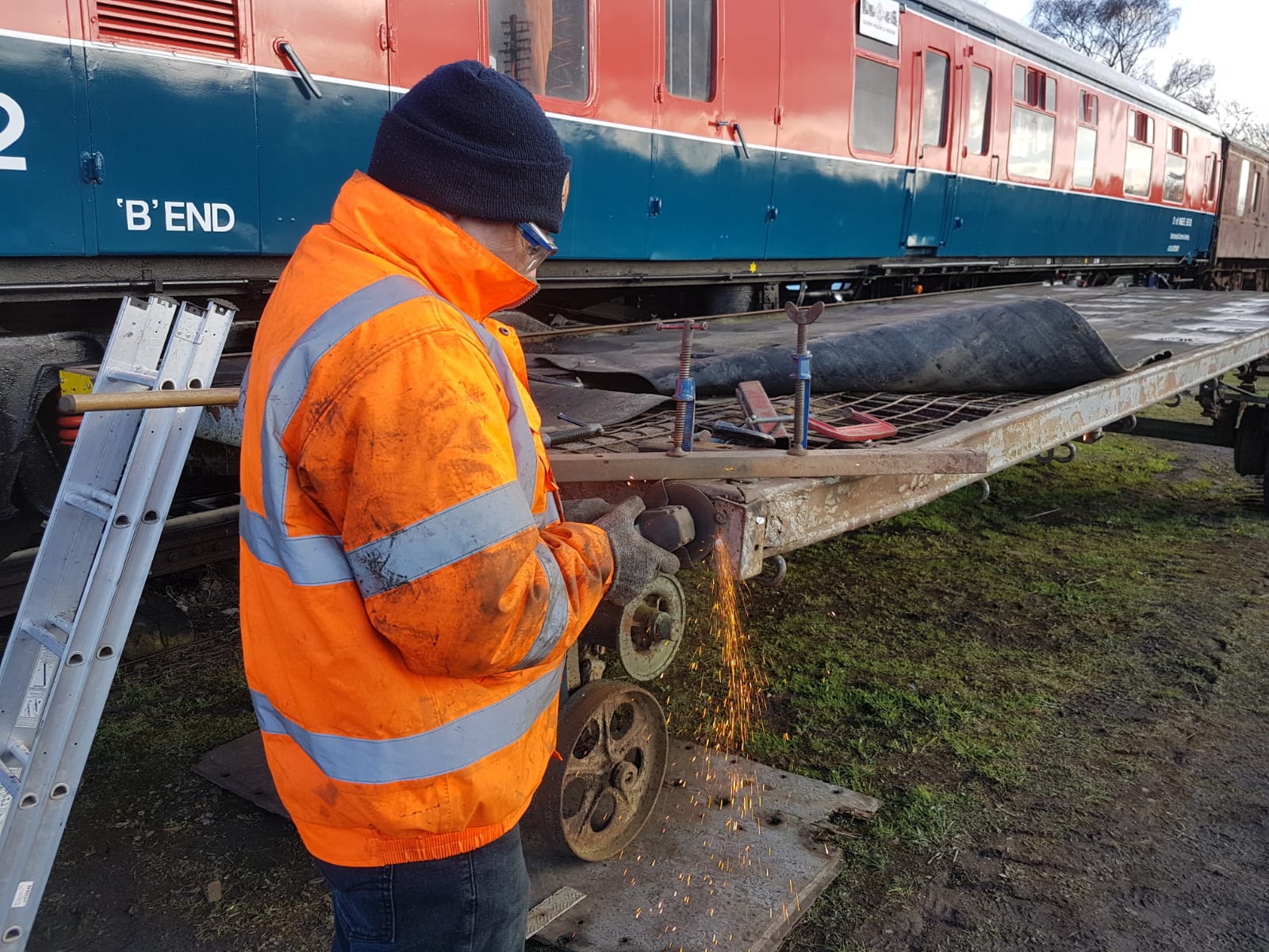 Our Salmon is the sole survivor of the LMS designed batch. Numbered DB996000 is was the very first Salmon built by BR to the LMS design. It was built at Derby Litchurch Lane works in 1949. Not a lot is known about its service life, but this wagon ended up as an internal user with the number 024717. It served at the very works it was built at as a vehicle to move items around the works. We don’t know exactly when it was confined to the works, but the earliest sighting on departmentals.com puts it at Litchurch Lane in 1985. It served in this role until 2014, where it was donated to us by Bombardier Transportation. Soon after it had arrived various accoutrements were ground off and a floor added using used sleepers cut in half down the length. With a pad exam and oil up of the brake gear it was released to traffic and has remained available ever since.
