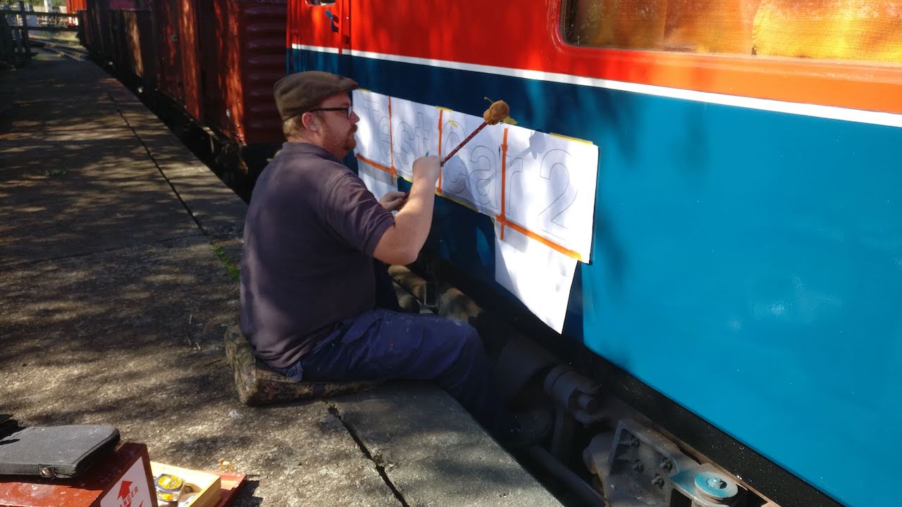 Matt by this point had just got back with the printed templates for the signwriting on the Container. Having chalked up, he then started signwriting.