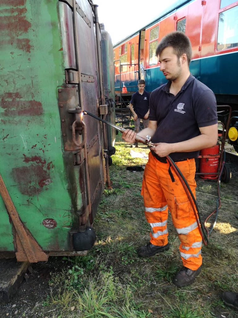 Another weekend and another washout. Once again we move up the line to Rothley to look at ADB977107. Some more welding from the C&W team has enabled us to complete the fitment of the west side windows. Nick and Jake fitted the glass and clamping wood.