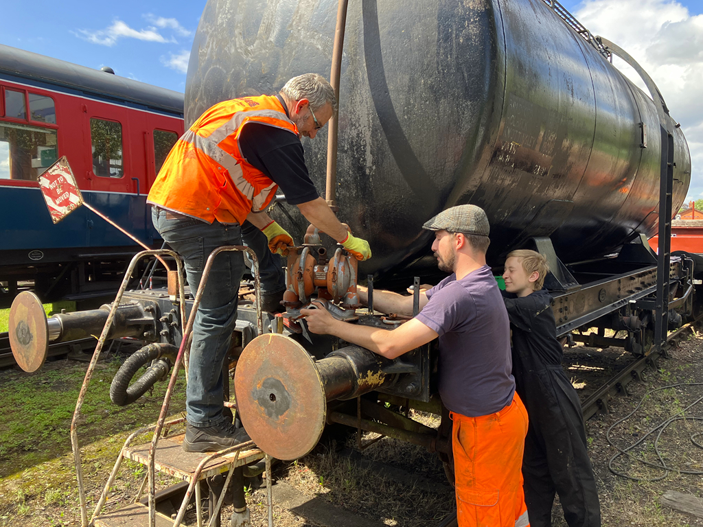 Before that though, we continue to tidy up after Railways at Work, and with the van train back at Quorn, Nick and Charlie put the barrels back in the barrel van to protect them from the elements.