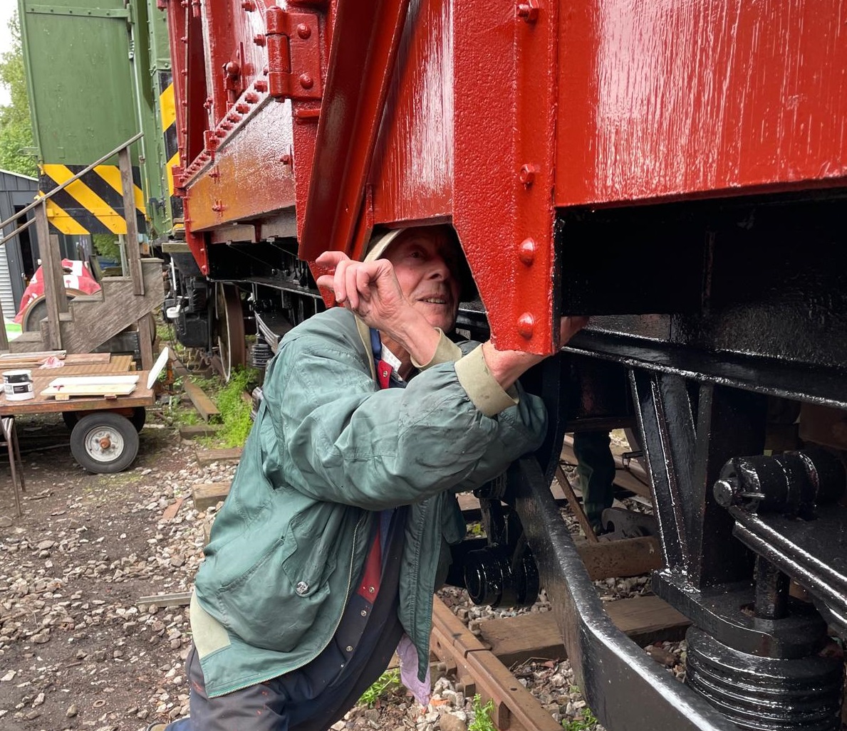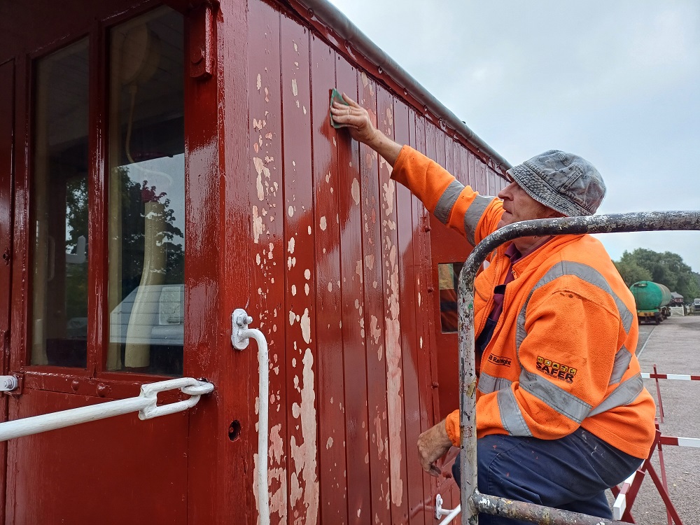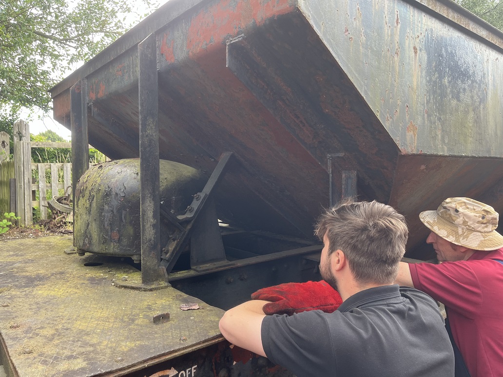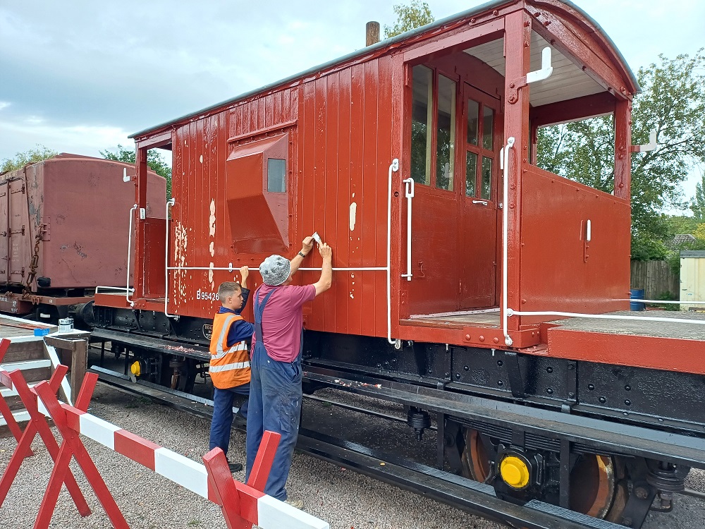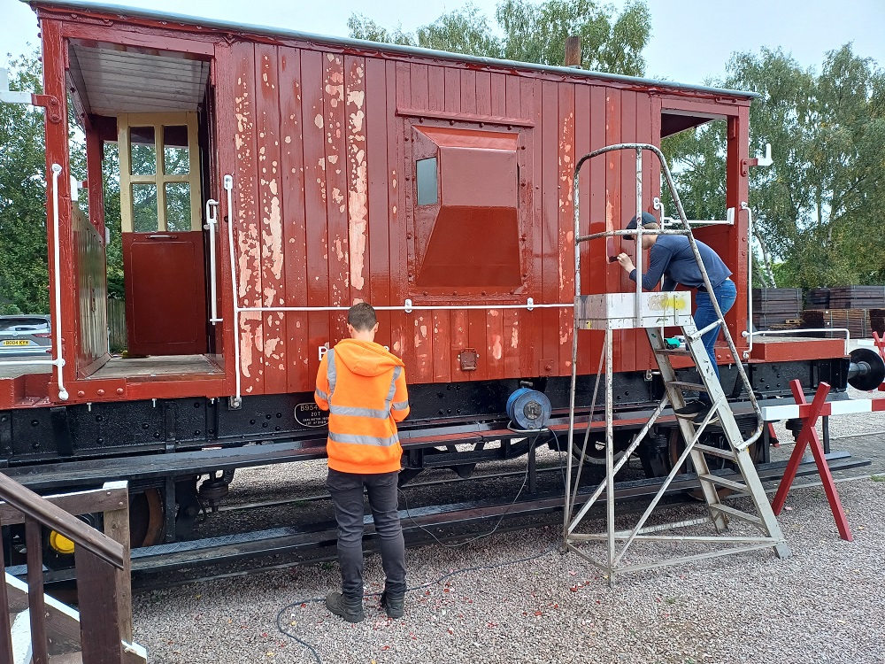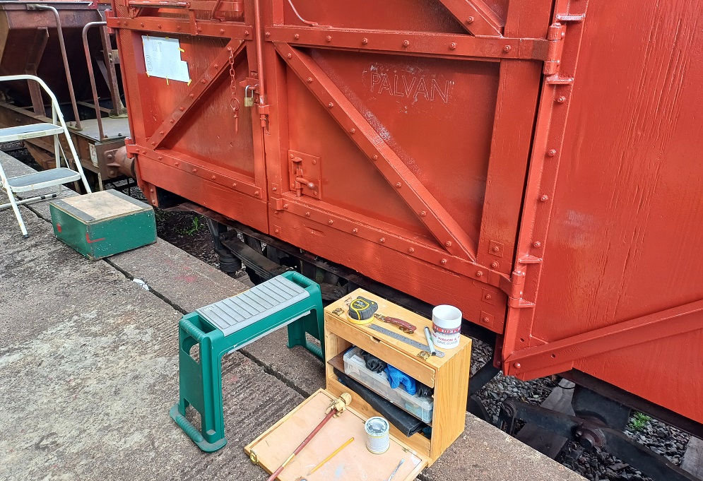 23rd Dec – At Rothley, Nick, Ross, Mark and Tom stripped the roofs from B777171, B780282 and B779978. New roof sheets were opened out and rolled up to be lifted on to the roof of each van. Dan, Oliver and Charlie cleaning the sheets and tidying up. By the end of the day, each van was sat with a sheet resting on its roof.