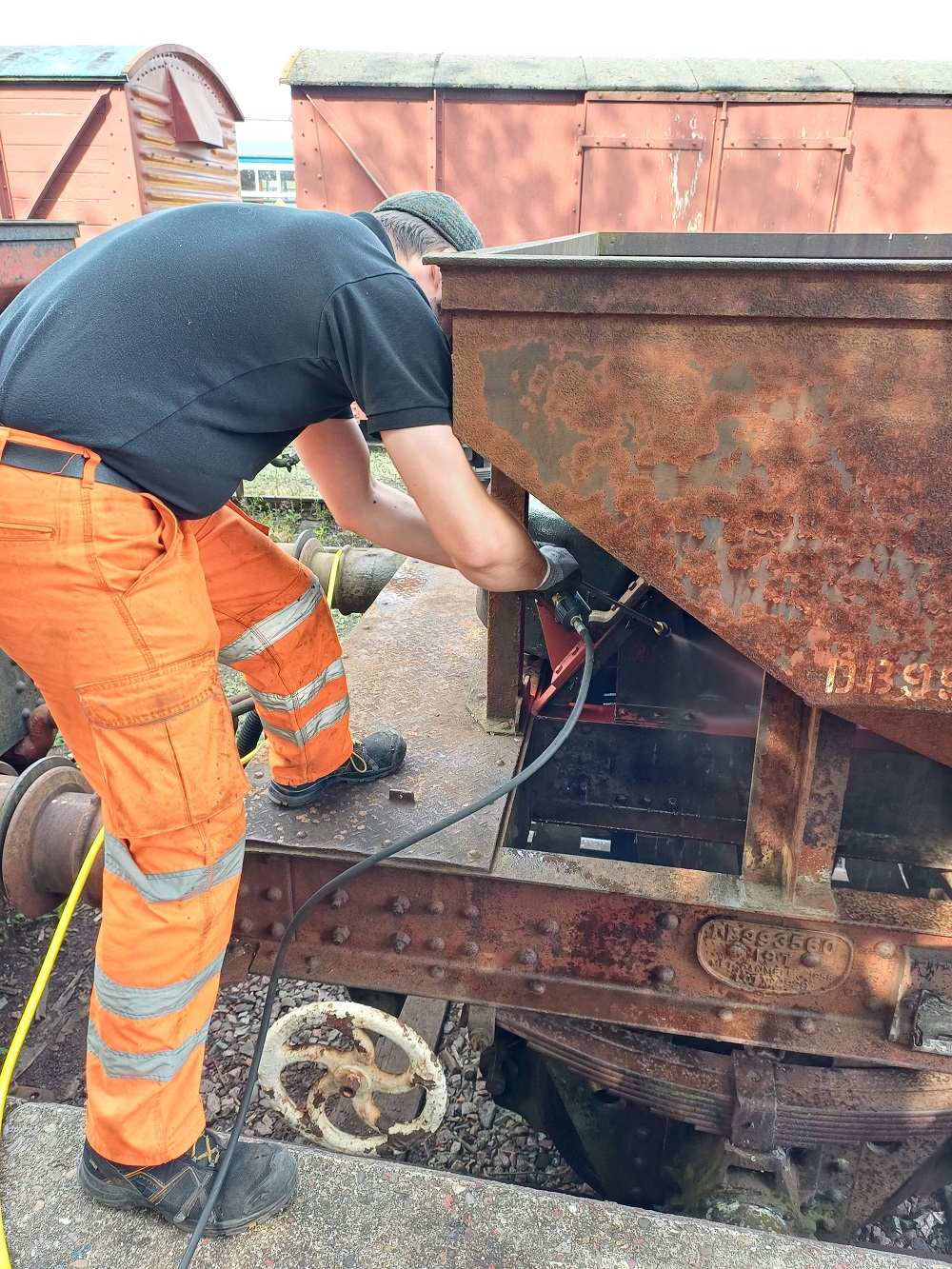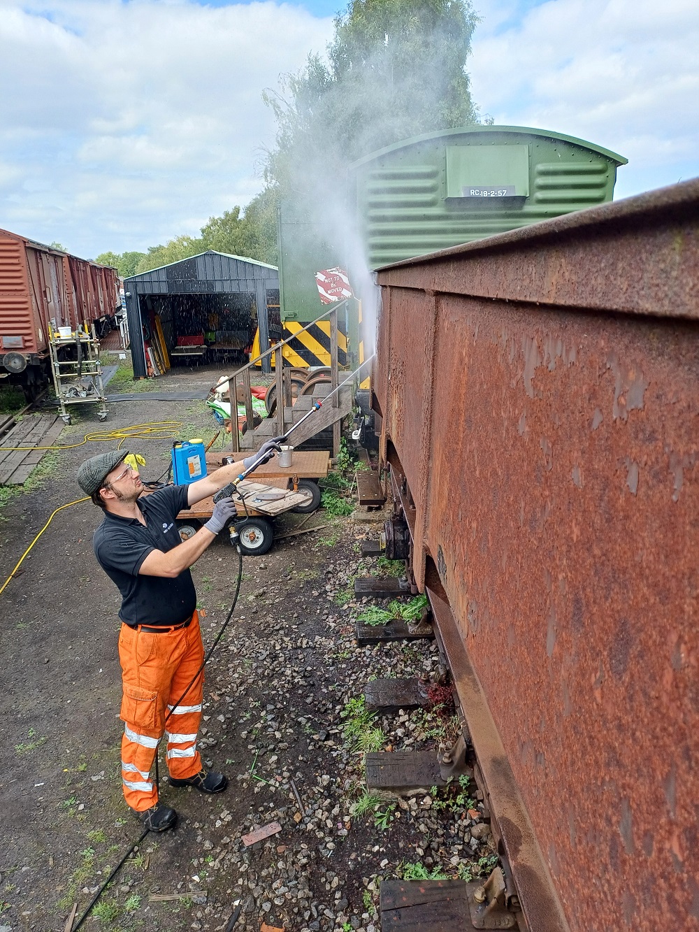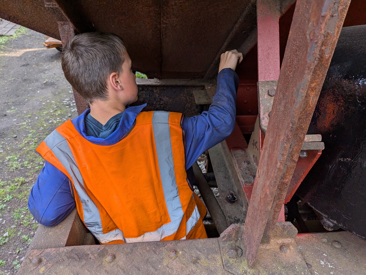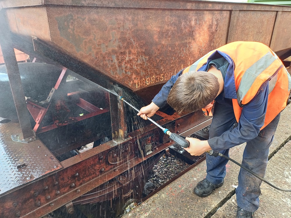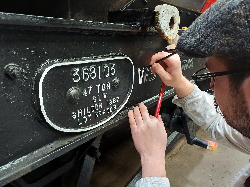 23rd Dec – At Rothley, Nick, Ross, Mark and Tom stripped the roofs from B777171, B780282 and B779978. New roof sheets were opened out and rolled up to be lifted on to the roof of each van. Dan, Oliver and Charlie cleaning the sheets and tidying up. By the end of the day, each van was sat with a sheet resting on its roof.