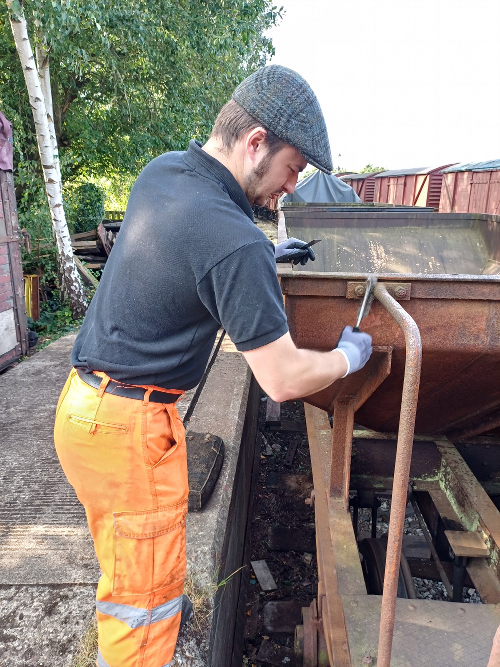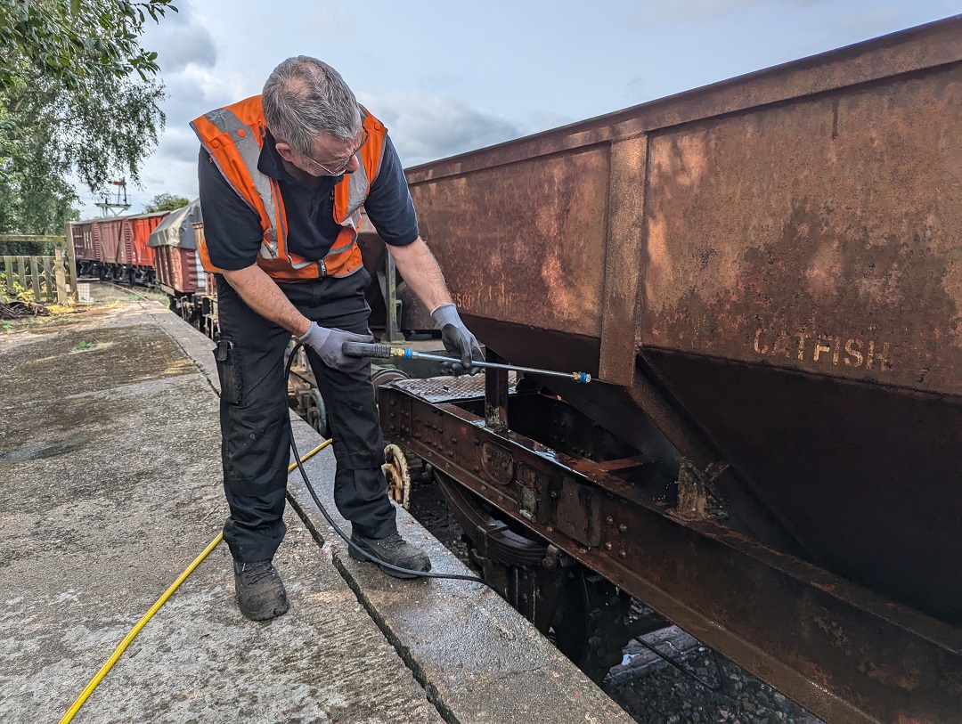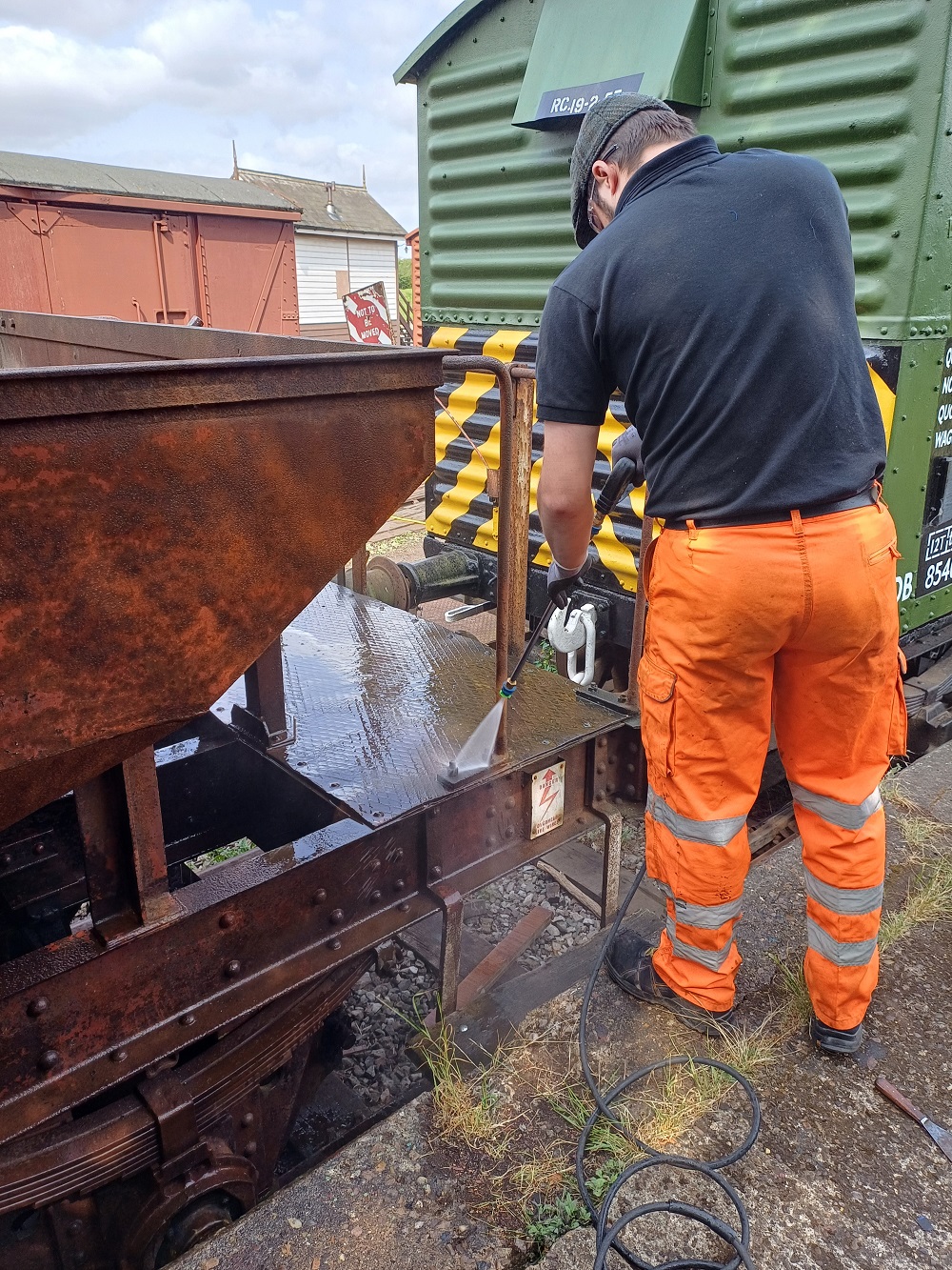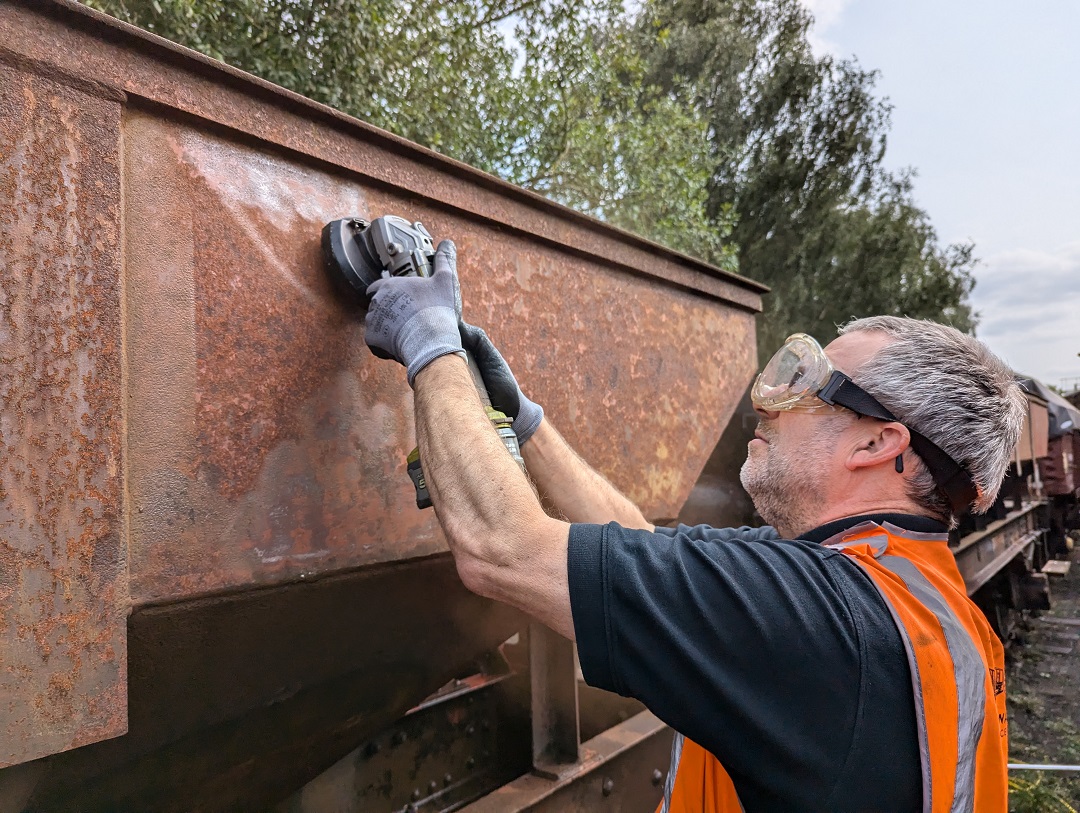 23rd Dec – At Rothley, Nick, Ross, Mark and Tom stripped the roofs from B777171, B780282 and B779978. New roof sheets were opened out and rolled up to be lifted on to the roof of each van. Dan, Oliver and Charlie cleaning the sheets and tidying up. By the end of the day, each van was sat with a sheet resting on its roof.