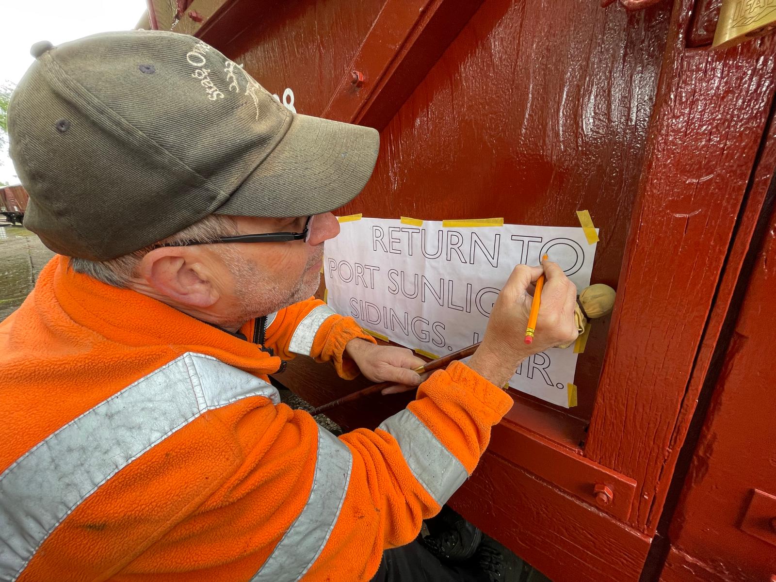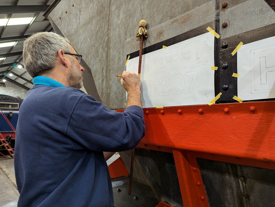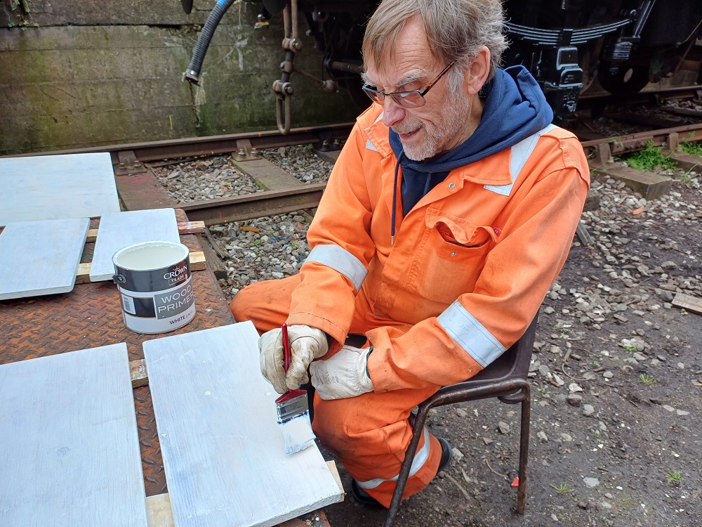 Ross and myself selected the best of the four rotten door frame noggins from the vans at Rothley. In the warmth of the Mess coach there was much head scratching and careful measuring up of what was a somewhat incomplete noggin. We were eventually able to complete a drawing that will enable the manufacture of some replacement noggins.