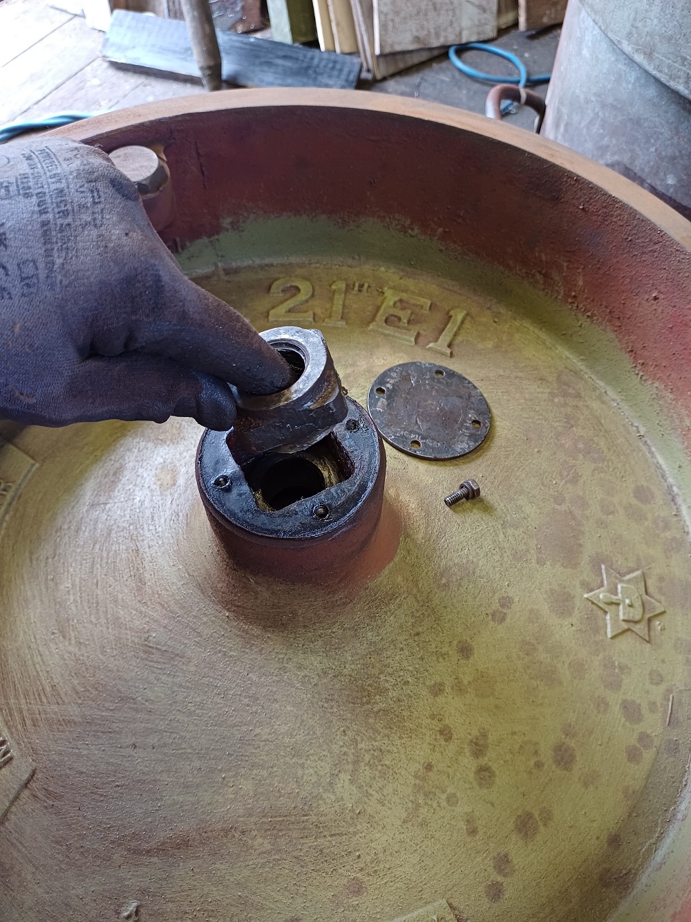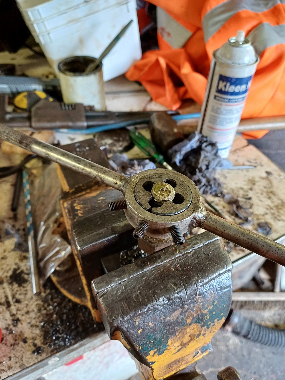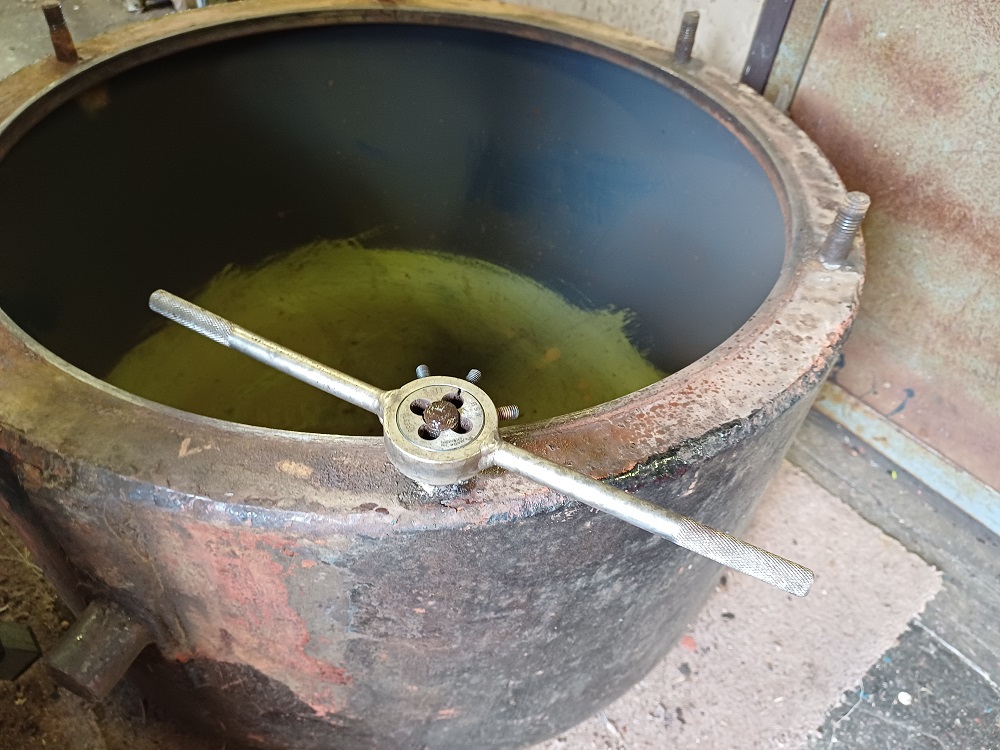 29th Dec – Nick continued with painting up the one usable vacuum cylinder whilst I cleaned up the threads of the dome studs with a die-nut.