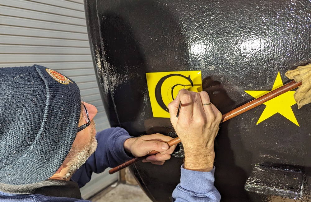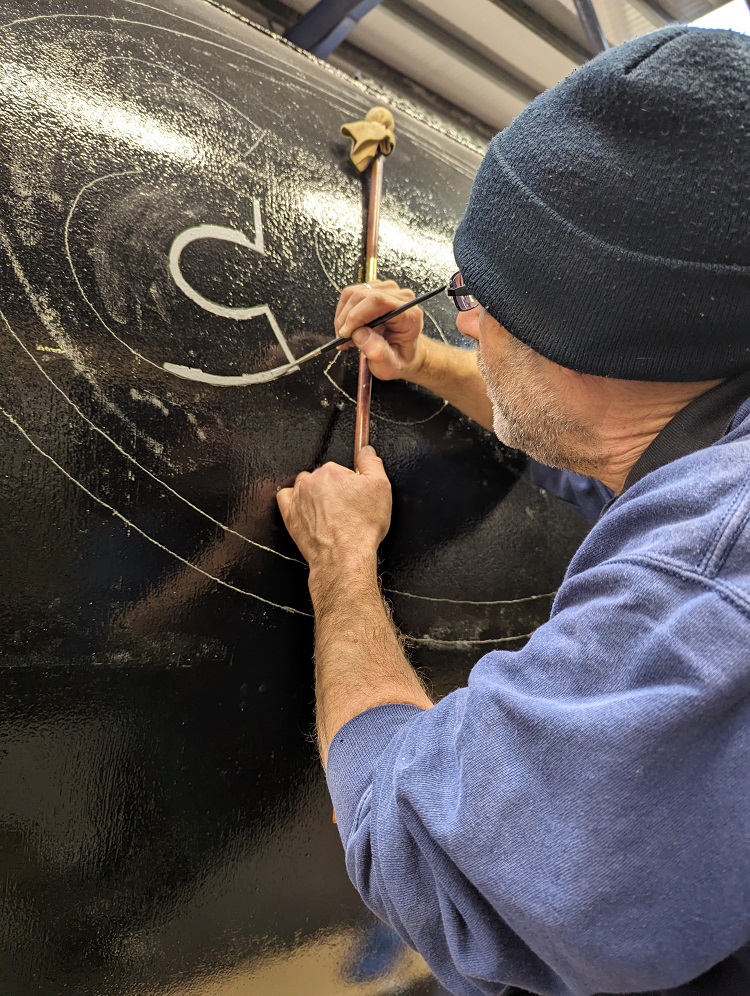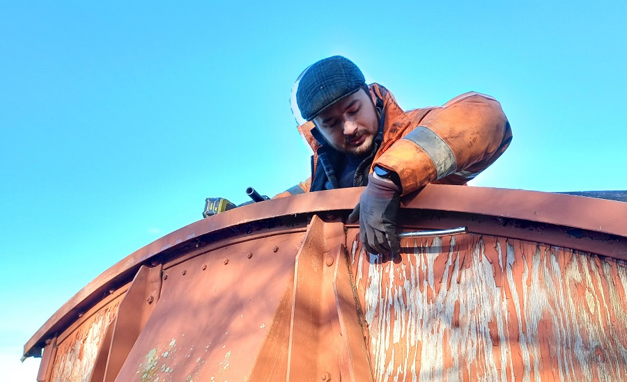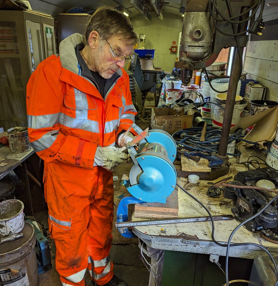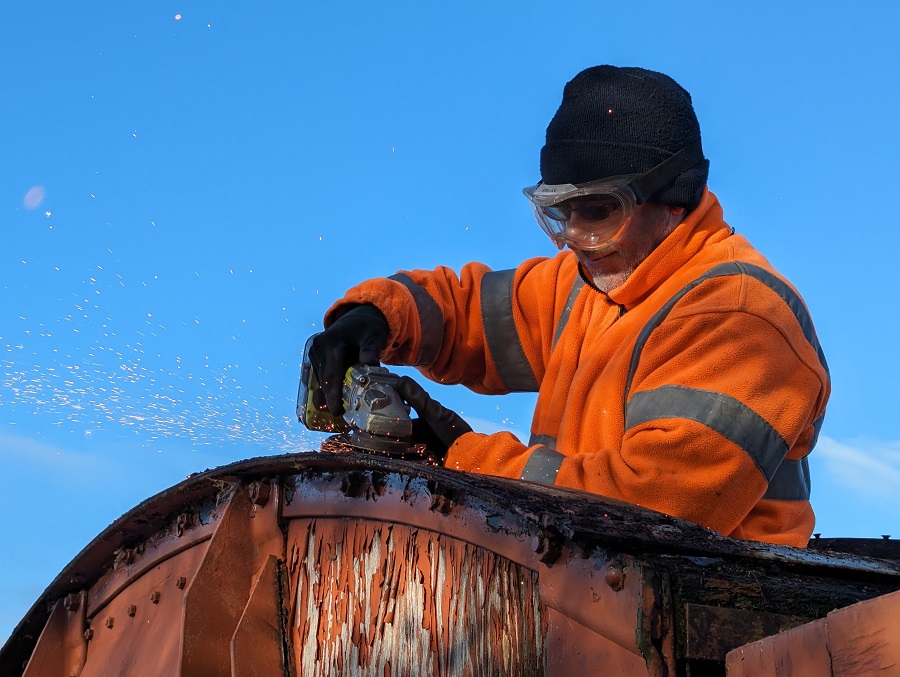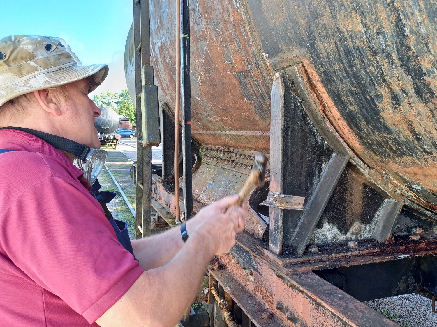 Edward was then started up to provide air as Tom, Mark and myself got to work scraping and needle gunning the framework and underframe of the west side of the Palvan.