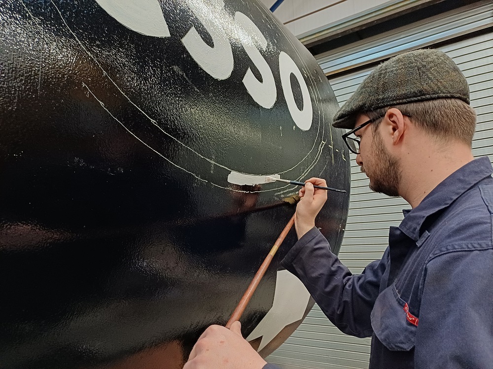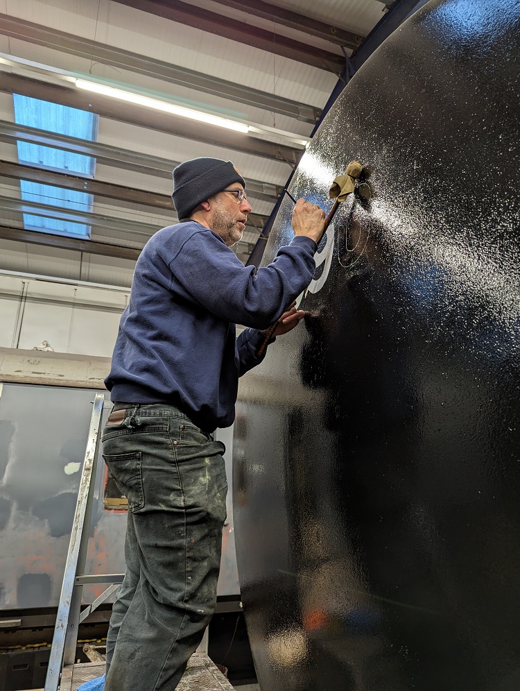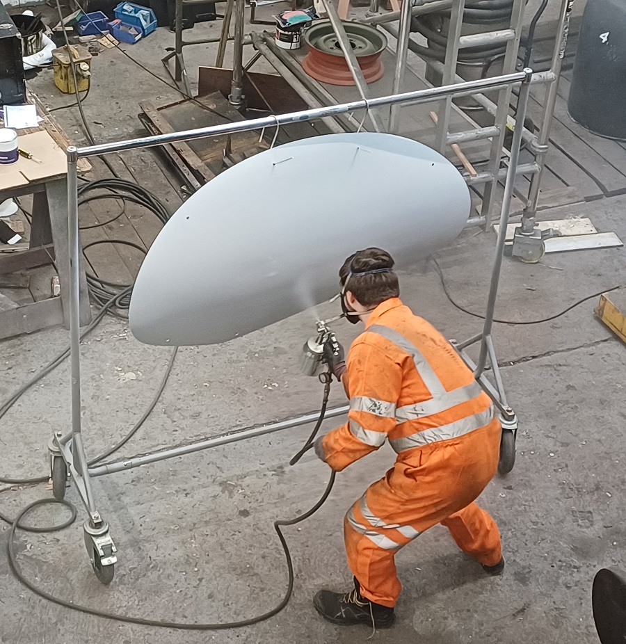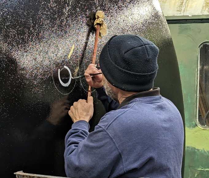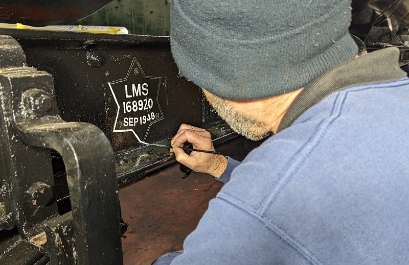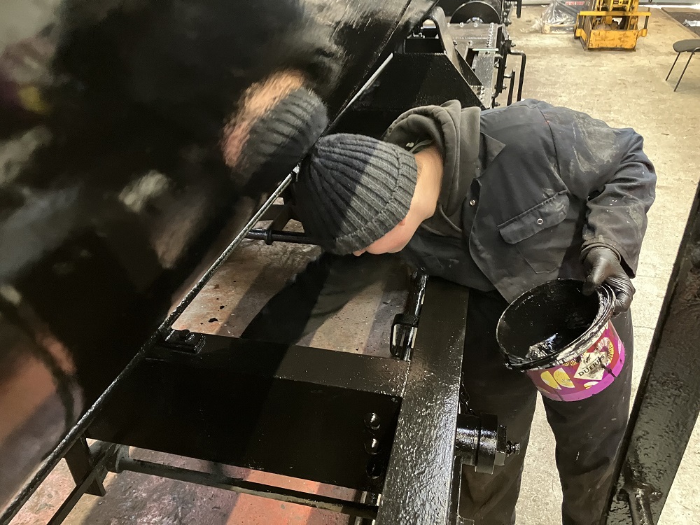 By the end of the afternoon the west side of the underframe and suspension of the Palvan was progressing well towards readiness for paint.