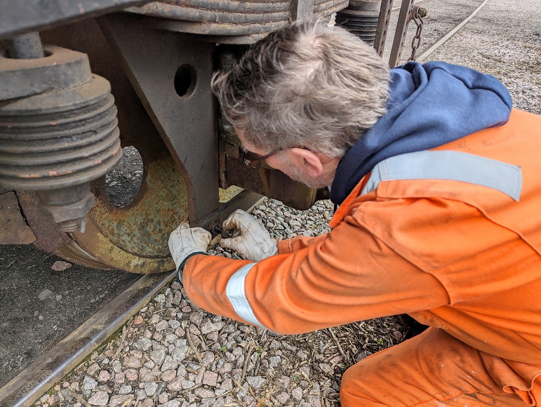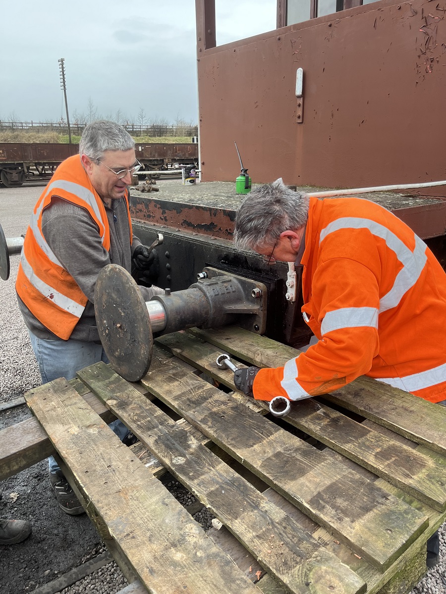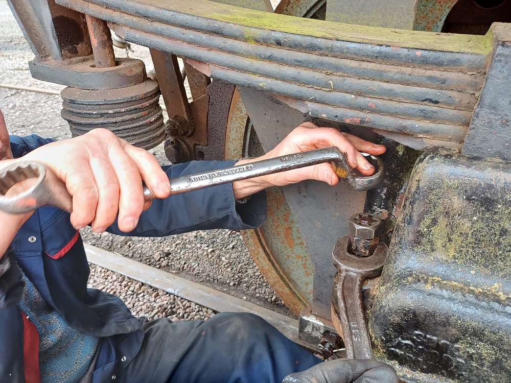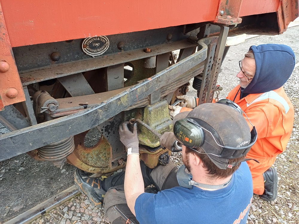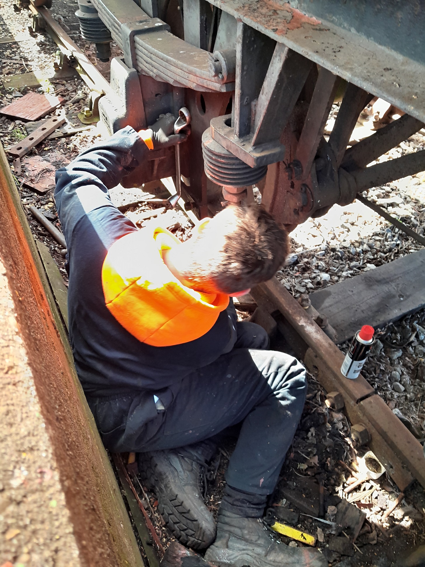 During the week Tom and Oliver helped remove the axlebox keep plates from the Palvan in readiness for the wheelset change.